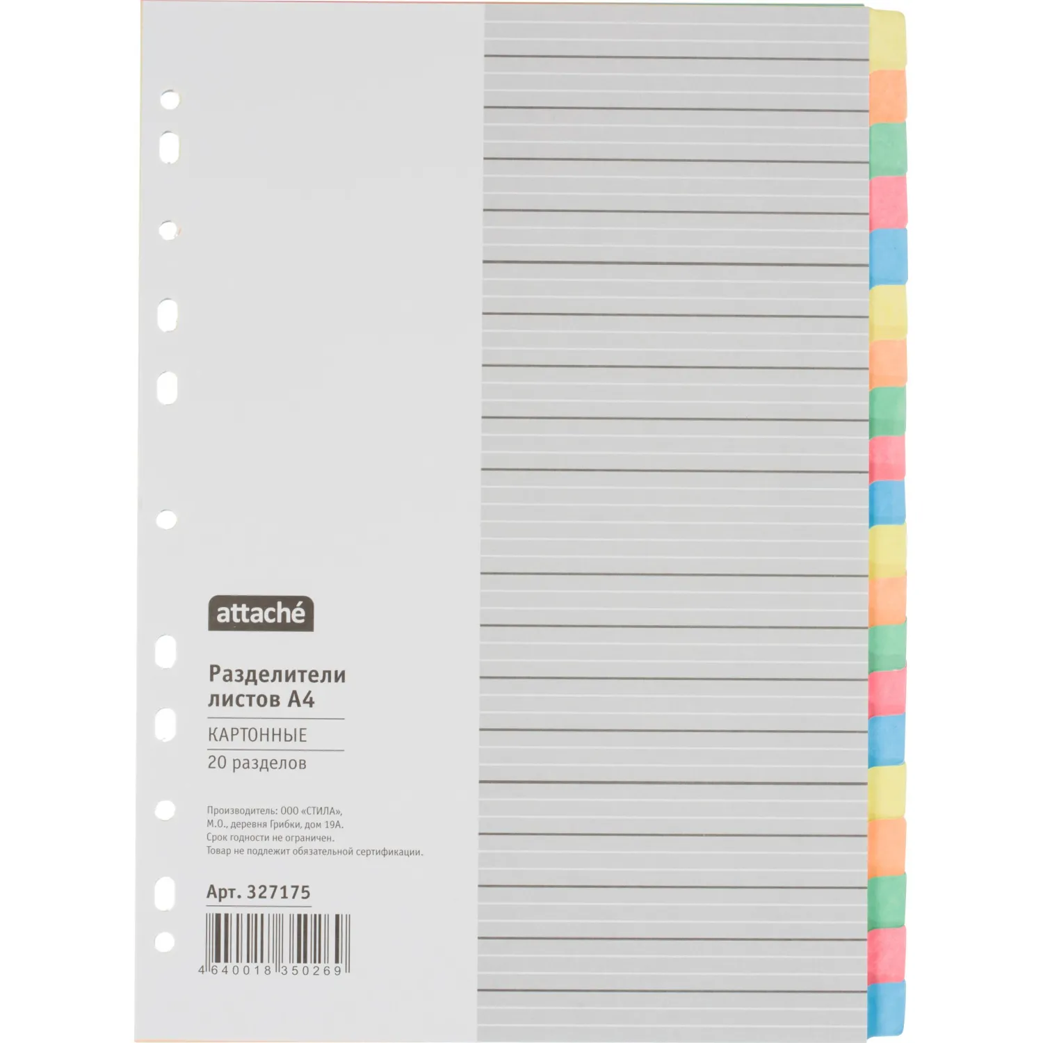 О товаре «Разделитель листов картонный Attache А4 20 листов по цветам (210x297 мм)»
