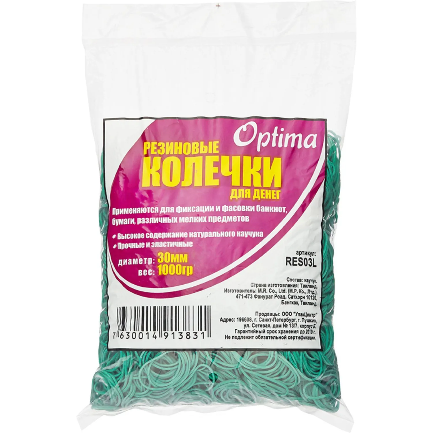 Резинка для денег 1 кг диаметр 30 мм зеленый