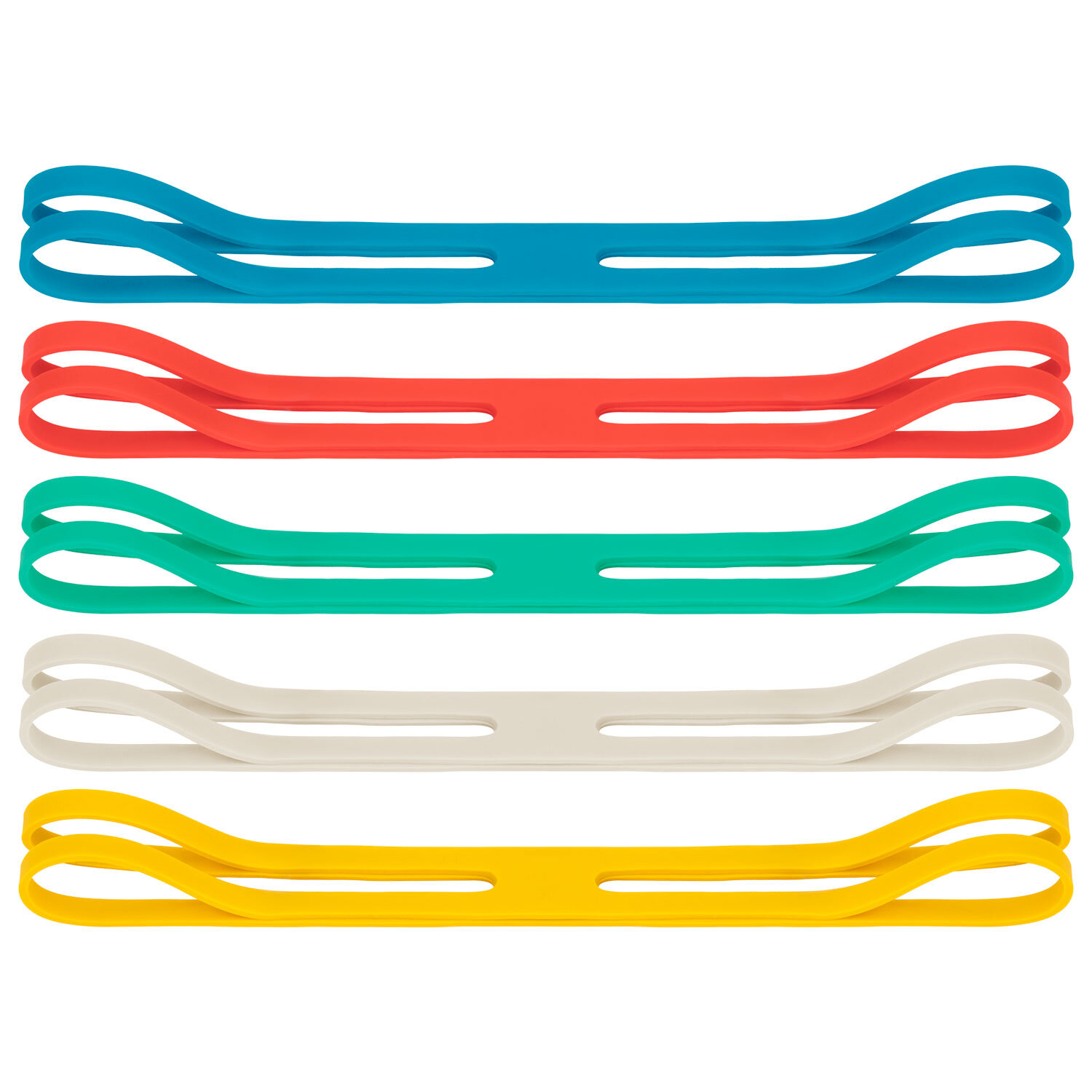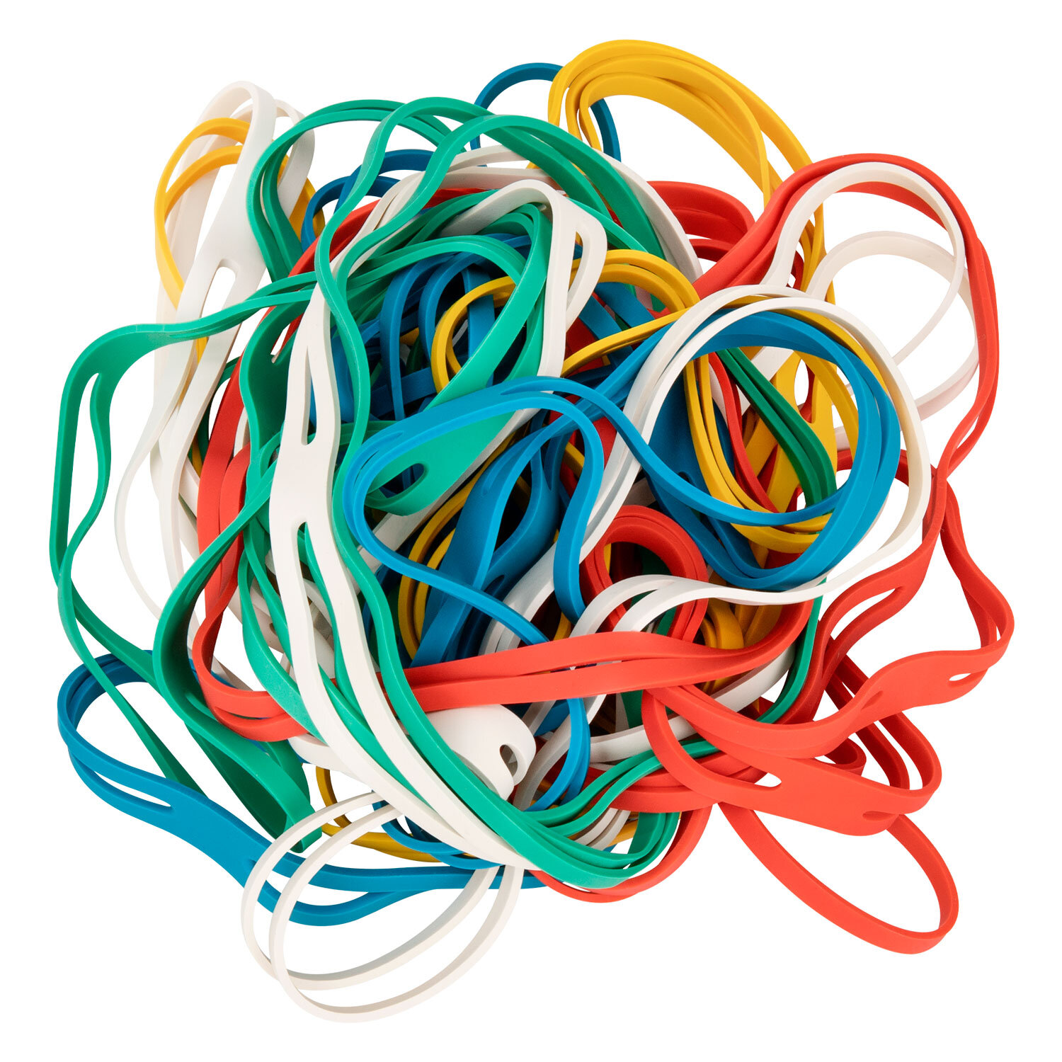 Благодаря натуральному каучуку резинки могут свободно растягиваться в несколько раз и мгновенно возвращаться к своему первоначальному диаметру, равному 160 мм. Толщина в 1,1 мм гарантирует прочность изделия. Вес – 120 г, количество в упаковке – 25 штук. Цвет – ассорти.