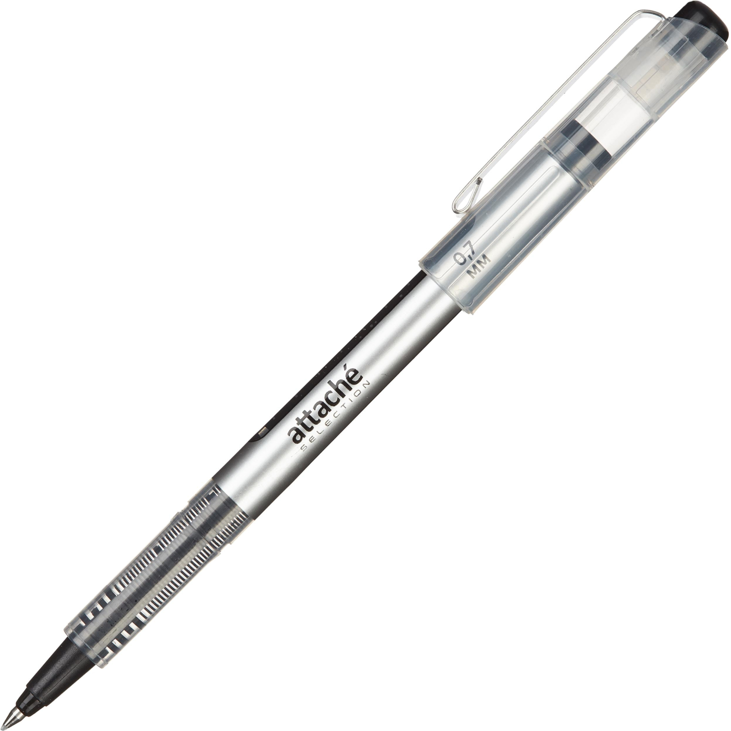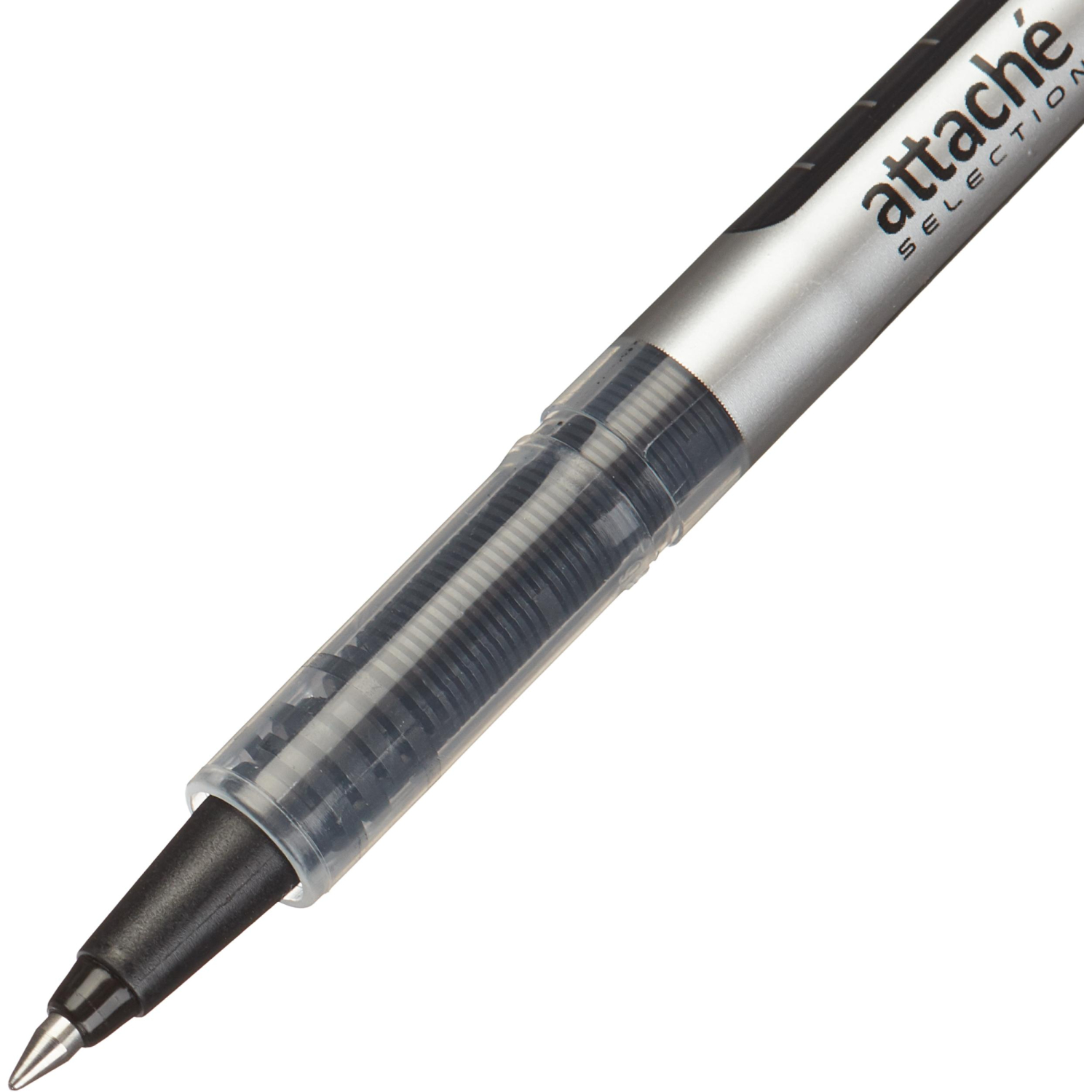 Одноразовая ручка-роллер Attache Selection Turbo в прочном пластиковом корпусе с колпачком. Клип на колпачке позволяет крепить роллер к одежде. Жидкие чернила черного цвета, находясь под давлением, позволяют писать на вертикальных поверхностях, обеспечивая четкие и яркие линии и сверхмягкое письмо, быстро высыхают. Толщина наносимых линий — 0,7 мм. На корпусе расположен индикатор, позволяющий заранее определить, когда закончатся чернила. Возможности смены стержня нет.