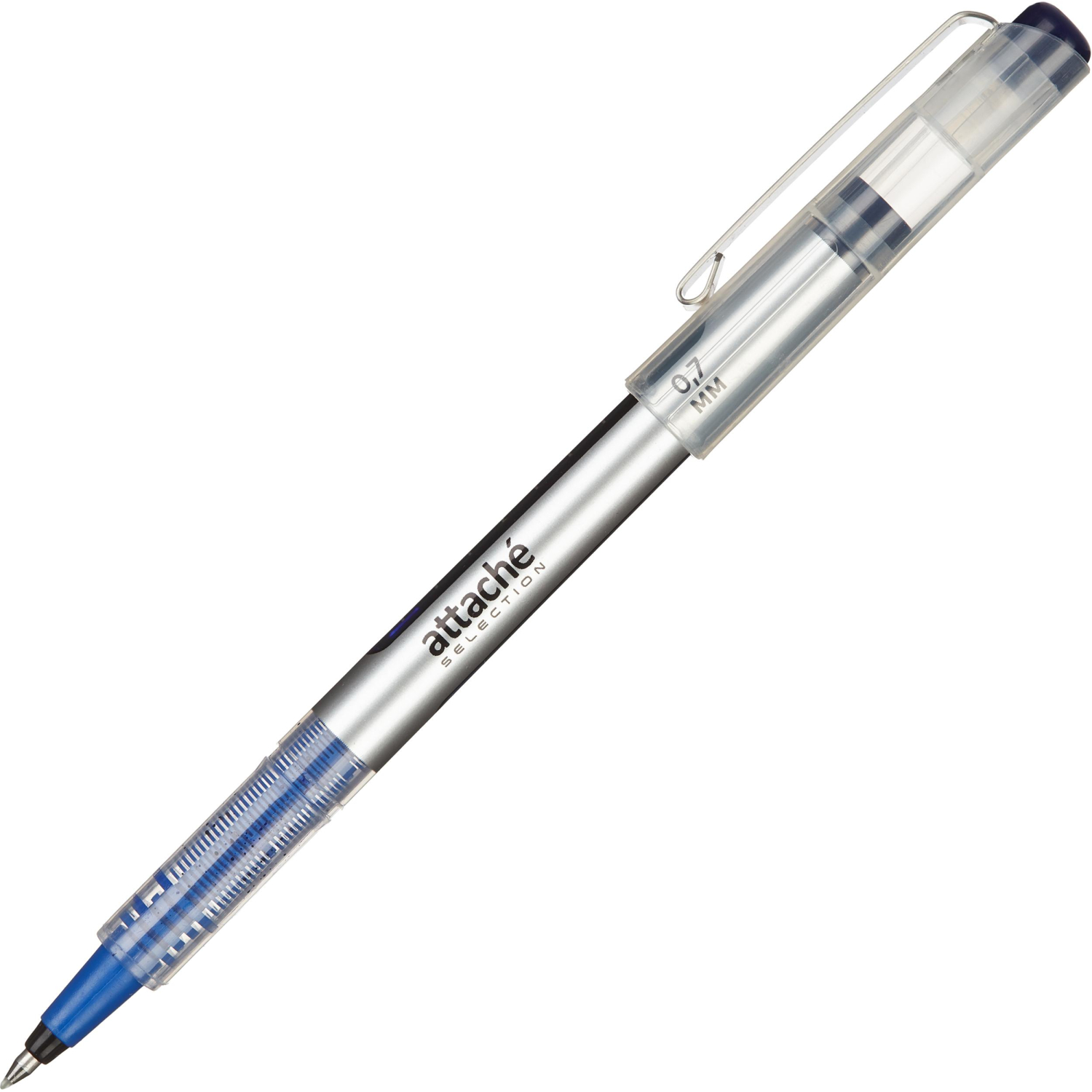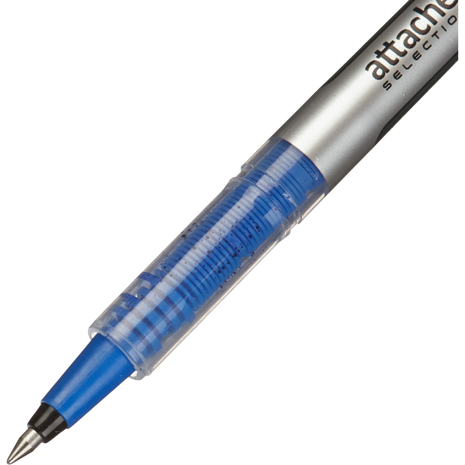 Одноразовая ручка-роллер Attache Selection Turbo в прочном пластиковом корпусе с колпачком. Клип на колпачке позволяет крепить роллер к одежде. Жидкие чернила синего цвета, находясь под давлением, позволяют писать на вертикальных поверхностях, обеспечивая четкие и яркие линии и сверхмягкое письмо, быстро высыхают. Толщина наносимых линий — 0,7 мм. На корпусе расположен индикатор, позволяющий заранее определить, когда закончатся чернила. Возможности смены стержня нет.