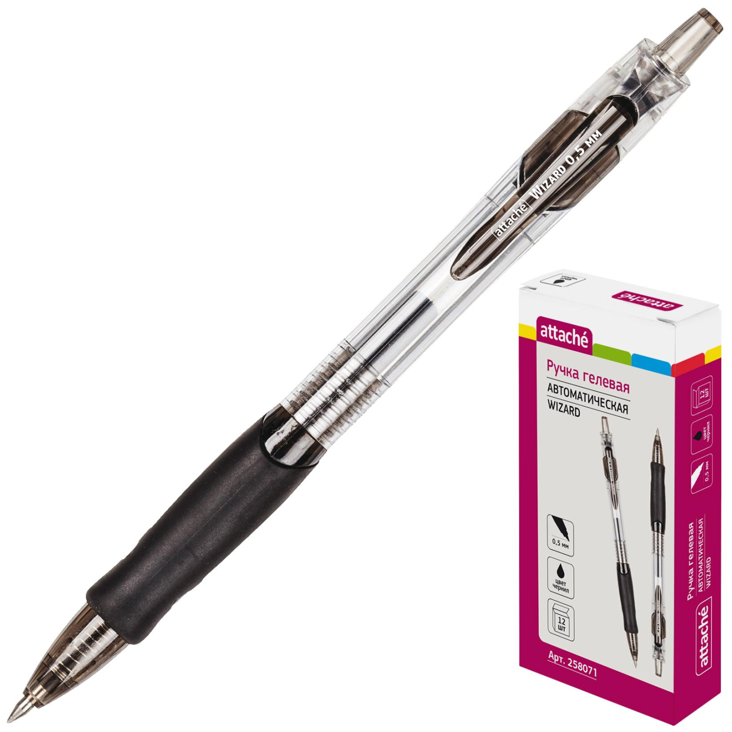 Ручка гелевая автоматическая Attache Wizard черная (толщина линии 0.5 мм)