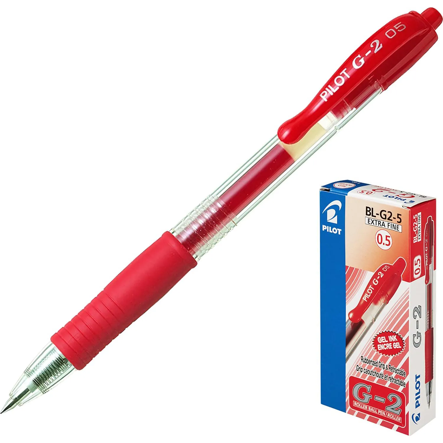 Ручка гелевая автоматическая Pilot BL-G2-5 красная (толщина линии 0.3 мм)