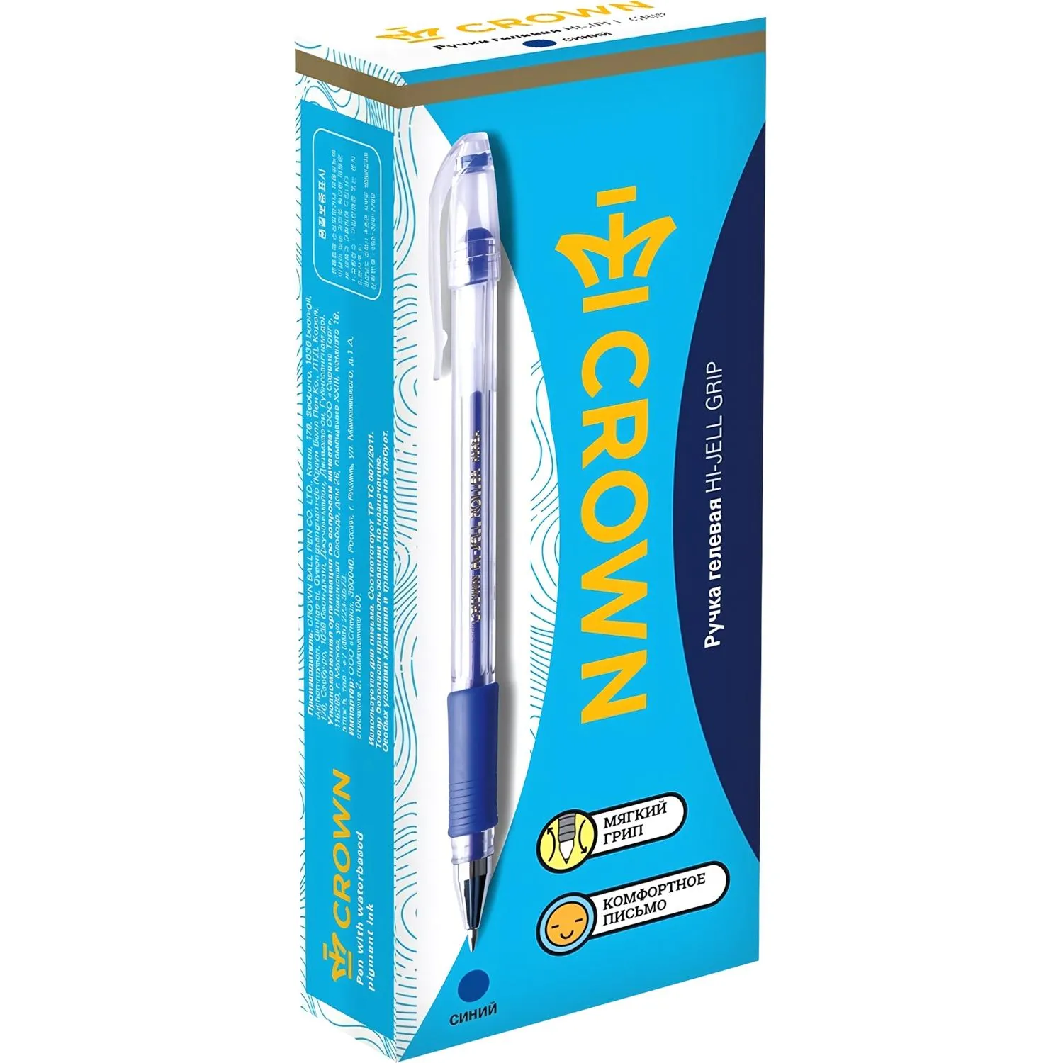 Гелевая ручка Crown Hi-Jell Grip — надежная ручка проверенная временем. Синяя ручка идеально подходит для экзаменов, ведения документооборота, заполнения бланков, заметок в ежедневнике, заполнения личного дневника, рисунков в скетчбуке. Корпус сделан из высококачественного первичного пластика, который в случае поломки не оставляет острых углов и мелких осколков. Корейские гелевые чернила на водной основе обладают высокой светостойкостью и водостойкостью, мгновенно высыхают, не смазываются и обеспечивают мягкое и комфортное письмо. Благодаря гелеобразной консистенции чернил и специальной технологии двух подпружиненных шариков в пишущем узле гелевые ручки Crown обеспечивают мягкое и комфортное письмо. Равномерно измельченный пигмент в составе чернил позволяет писать ярко без пропусков и исключает царапины на бумаге. Прорезиненная зона захвата снижает давление на пальцы рук при письме. Цвет чернил — синий, диаметр пишущего узла — 0,7 мм. Упаковка: картонная коробка по 12 штук. Пиши комфортно и рисуй ярко вместе с гелевыми ручками Crown. Расходные материалы для данной ручки не представлены в ассортименте производителя и в ассортименте компании Комус.