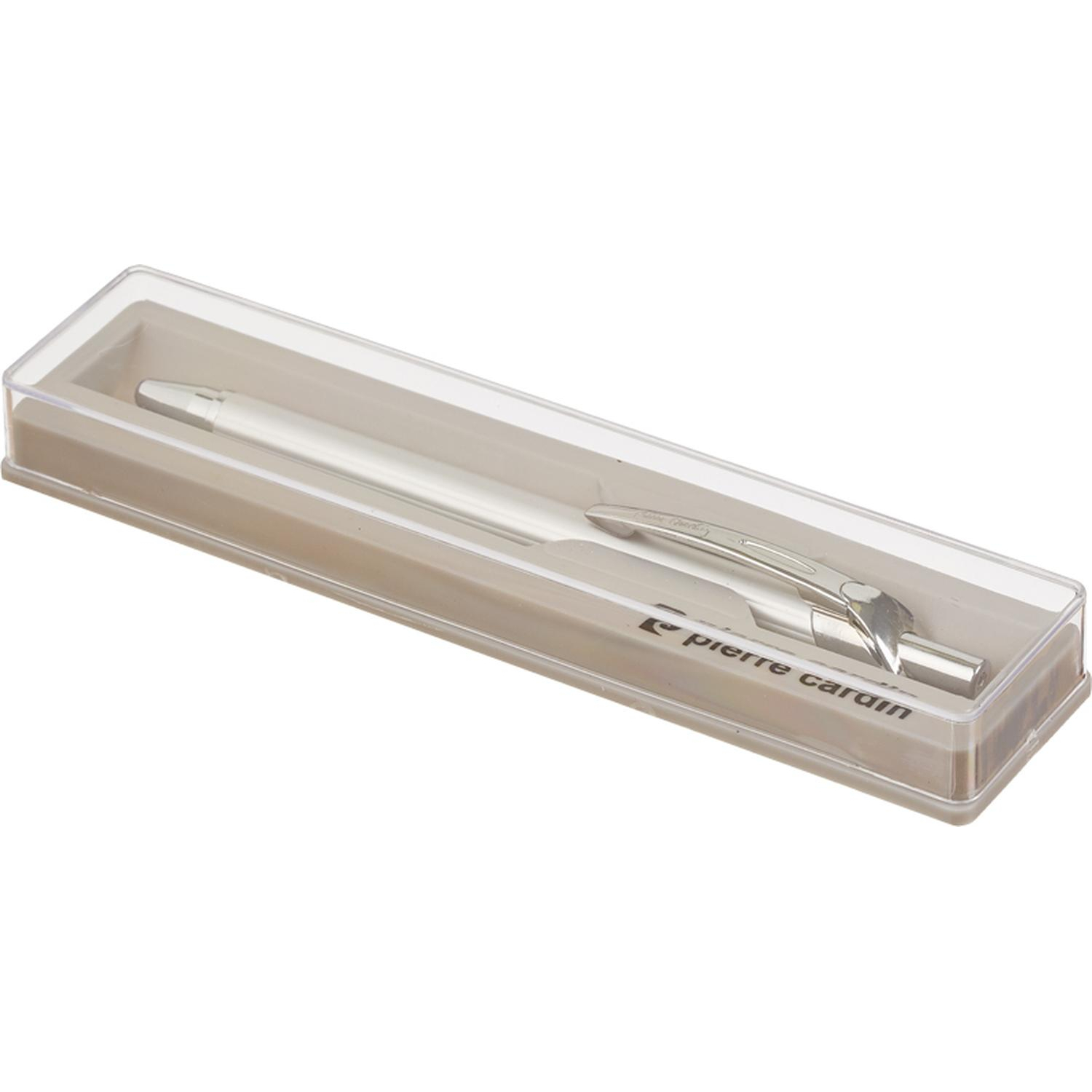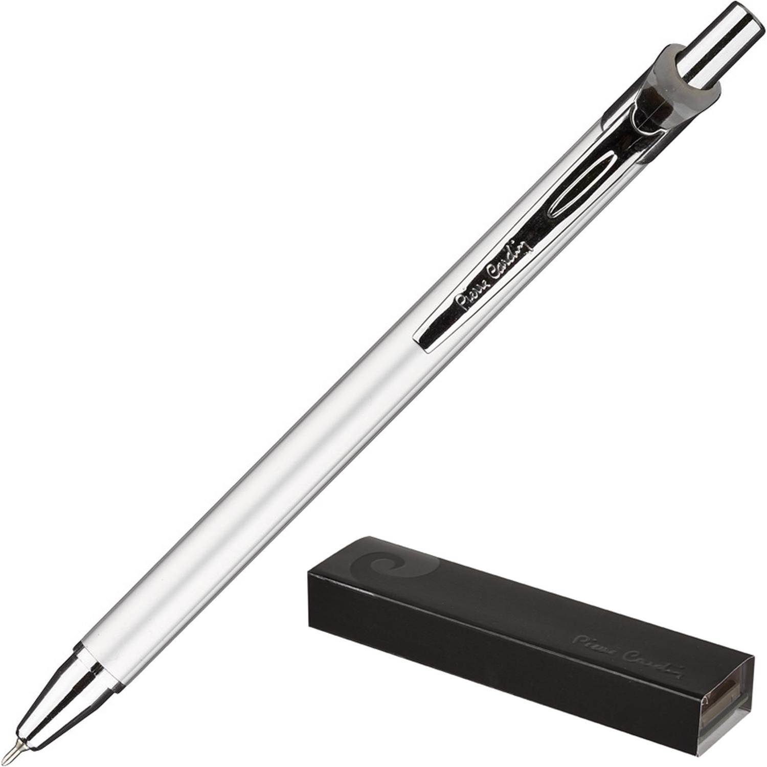 Шариковая ручка Pierre Cardin, из коллекции Actuel, в корпусе из алюминия. Детали отделки выполнены из алюминия с хромированным покрытием. Цвет корпуса — серебристый. Цвет чернил — синий. Толщина линии письма — 0,5 мм. Комплектуется пластиковым подарочным футляром с бархатистым ложементом. Размеры ручки без учета упаковки составляют 13.585×0.767 сантиметров.