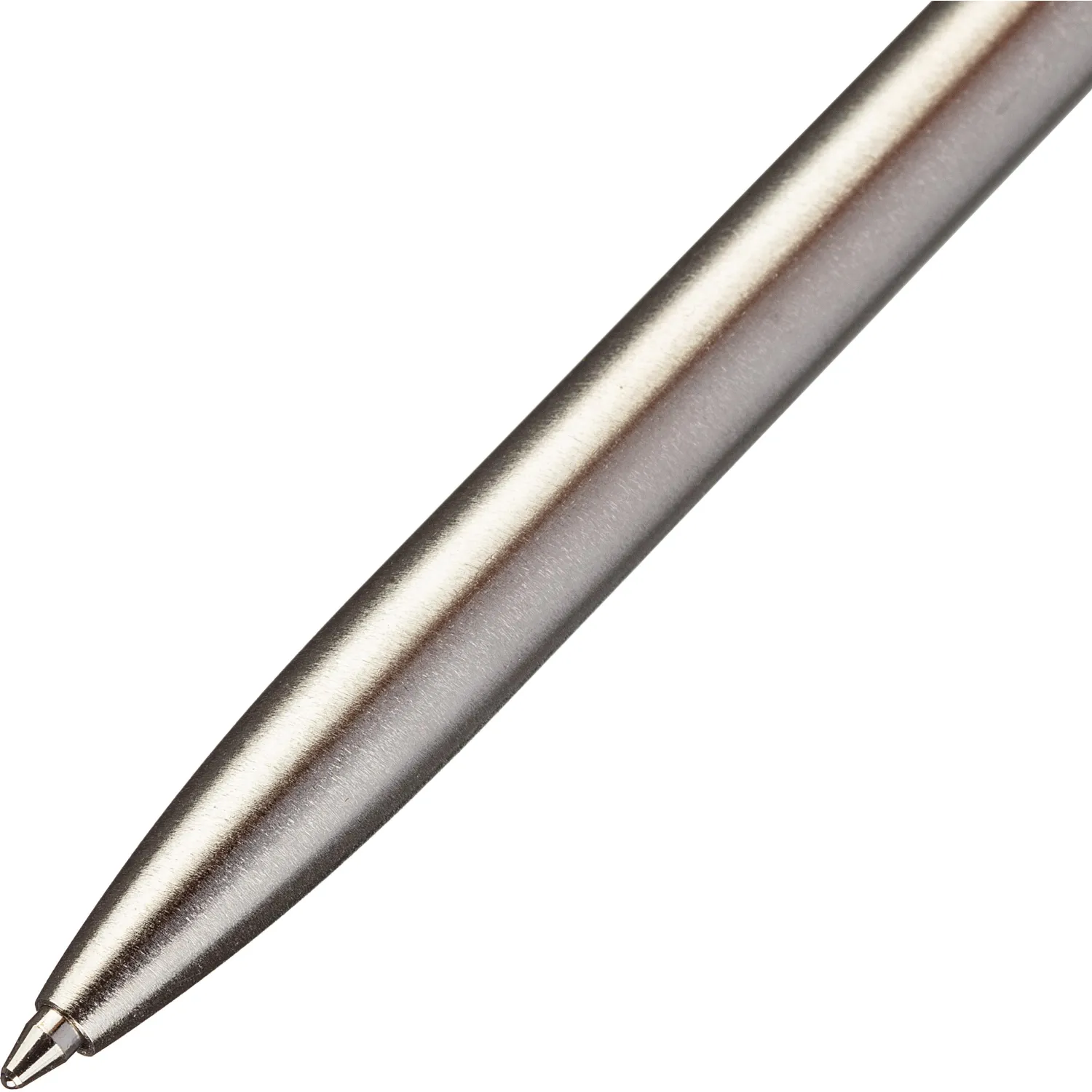 Модель имеет латунный корпус серого цвета. Стильный дизайн ручки дополняет металлическая клипса, позволяющая плотно закрепить ручку в кармане или тетради для записей. Декоративные элементы выполнены с использованием хромированного покрытия. Сменный стержень длиной 98,5 мм снабжен стандартным наконечником и заправлен пастой синего цвета. Диаметр пишущего узла 1 мм создает тонкую линию письма, равную 0,7 мм. Тип нанесения, который возможен на данную модель: тампопечать; лазерная гравировка. Страна производства — Индия.