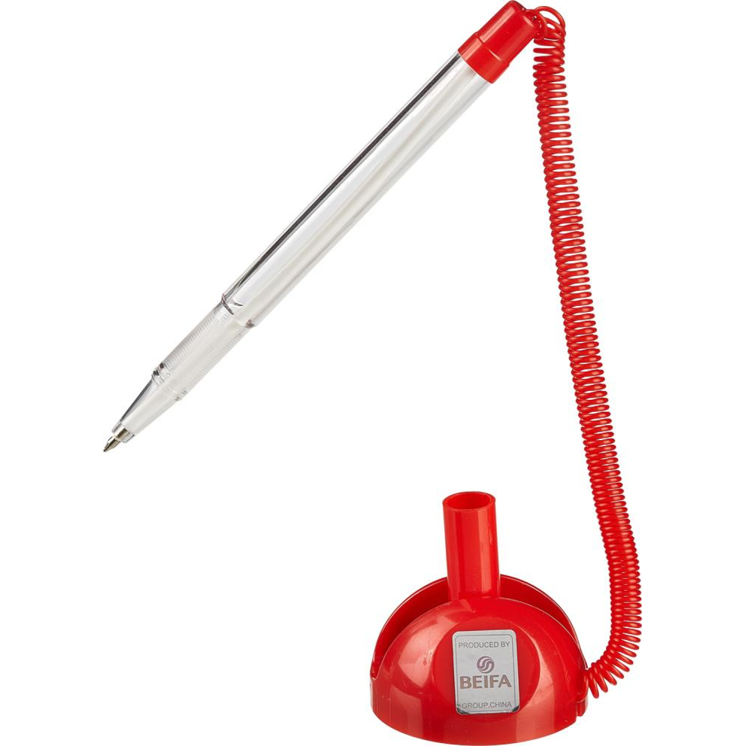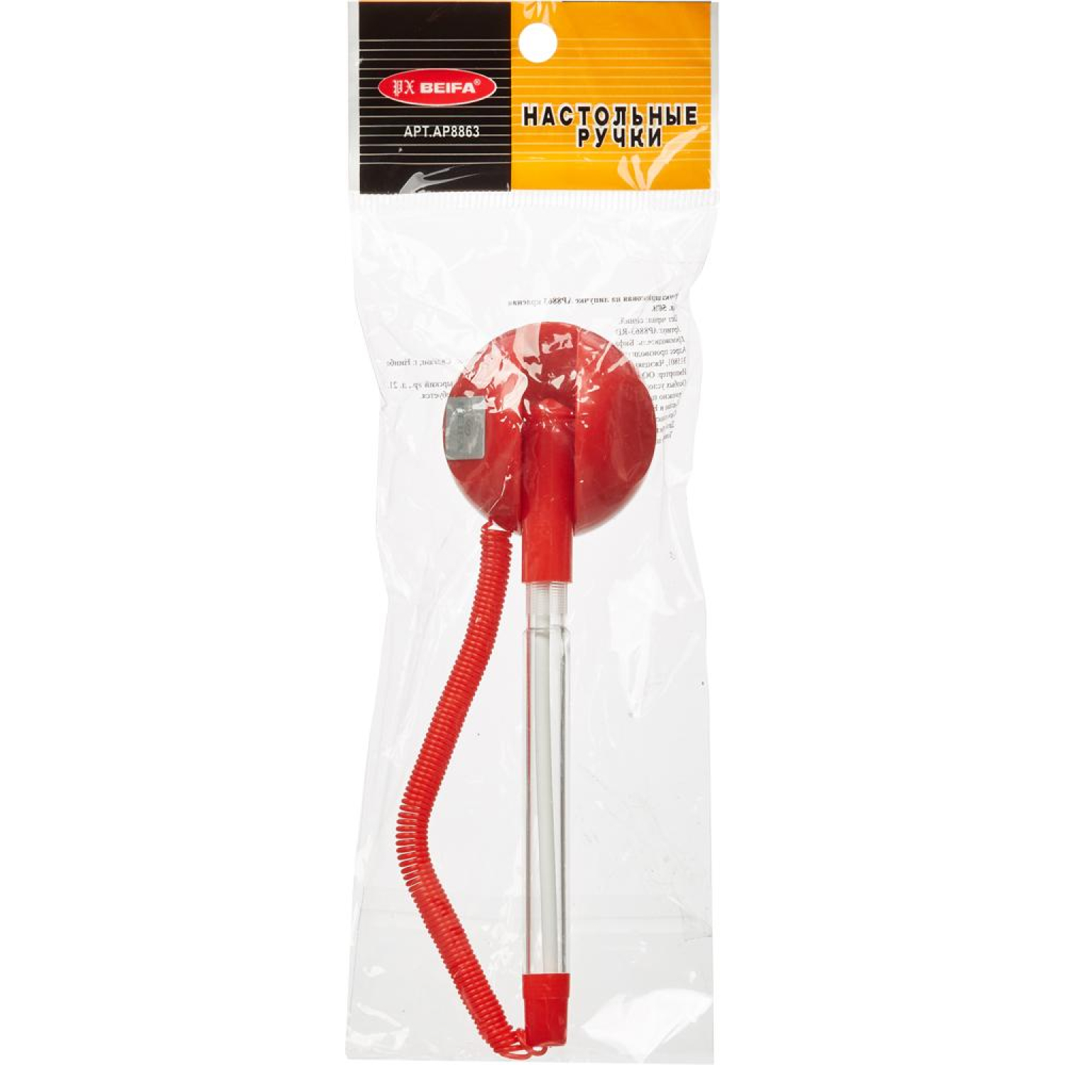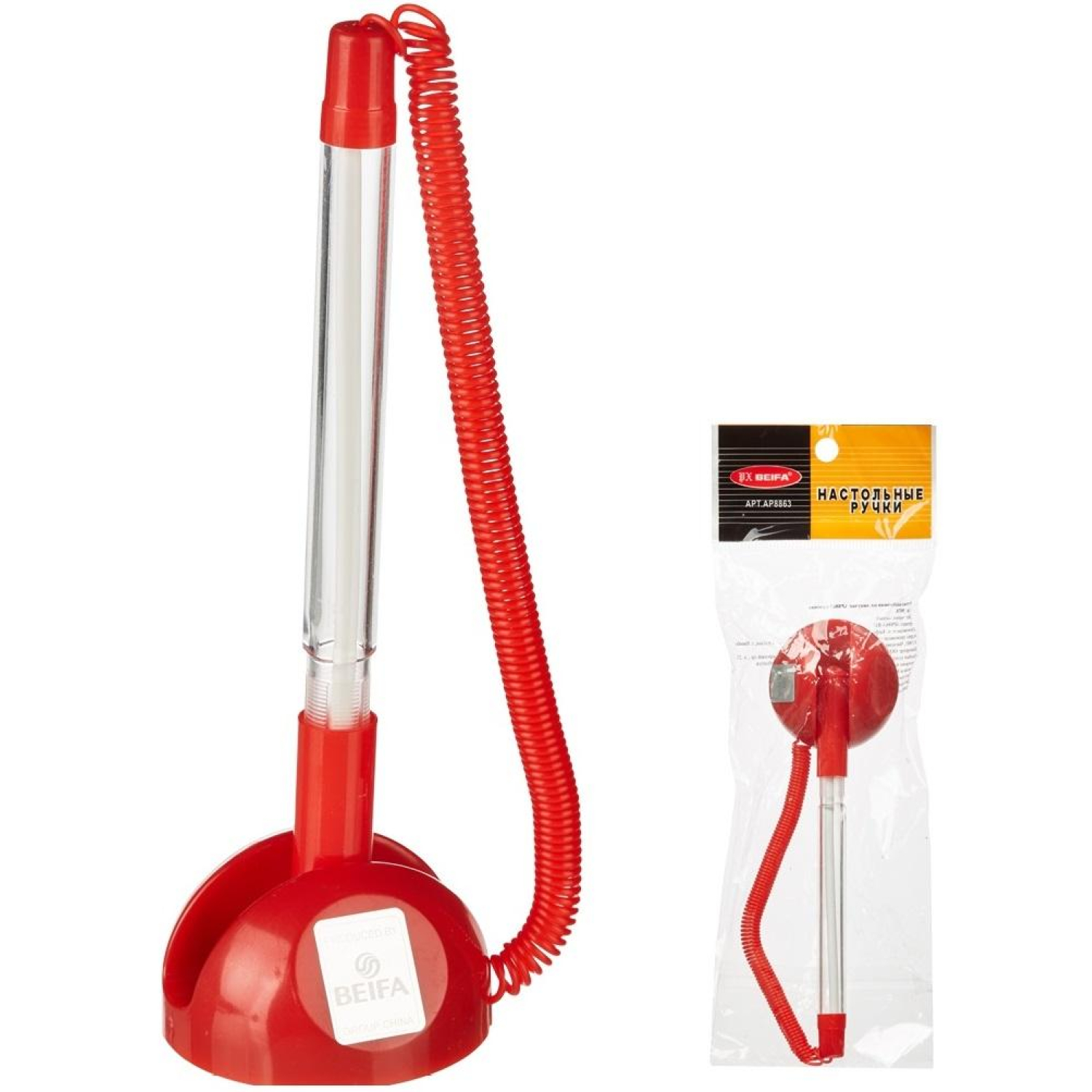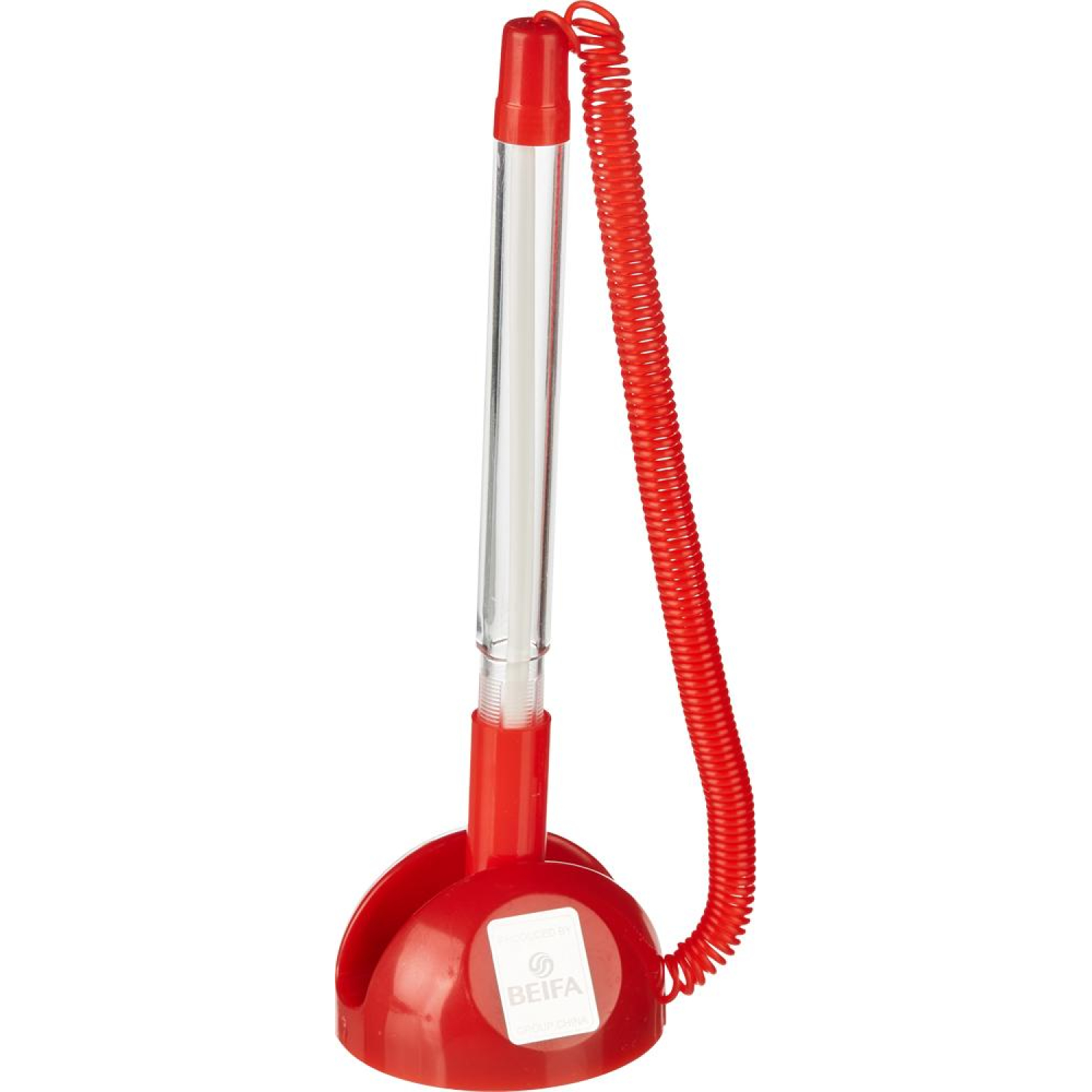 Ручка шариковая на подставке Beifa цвет чернил синий с пружиной (толщина линии 0,5 мм, красный корпус)