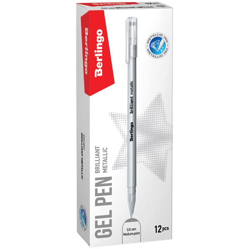 Ручка гелевая Berlingo Brilliant Metallic c серебряным цветом чернил и эффектом металлик будет по душе тем, кто ценит всё неординарное. Ручка изготовлена с использованием корейских чернил, которые обеспечивают высокое качество письма и срок годности 2 года. Бархатистое покрытие soft-touch создаёт дополнительный комфорт при использовании. Цвет корпуса соответствует цвету чернил. Расширяя возможности для воплощения творческих задумок, производитель сделал ручку, подходящей для рисования и письма на чёрной бумаге. Диаметр пишущего узла 0,8 мм обеспечивает мягкость письма и насыщенность цвета.