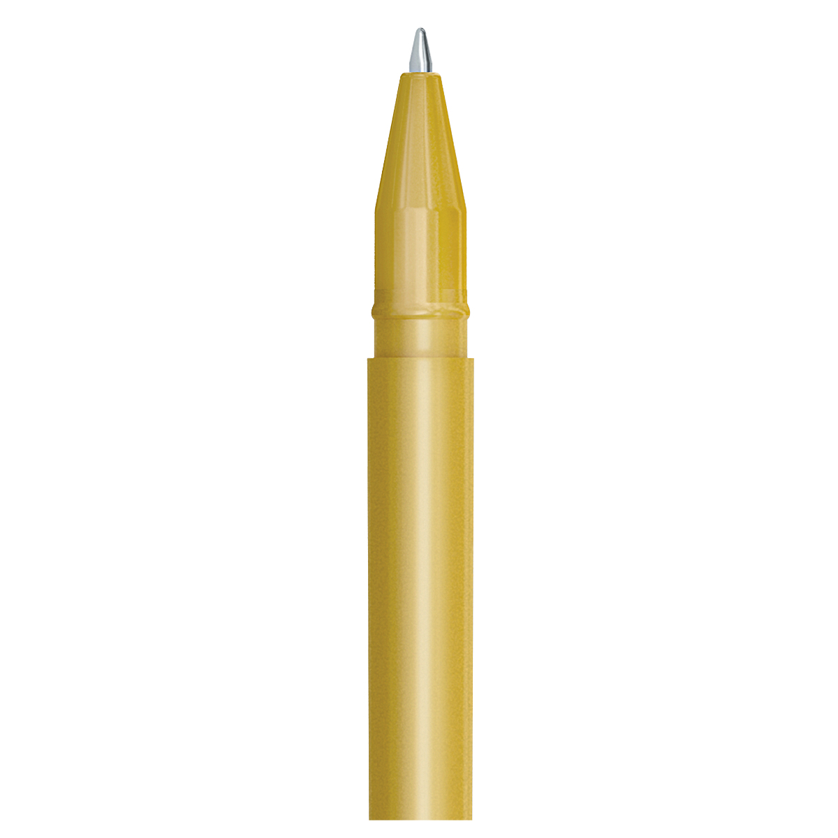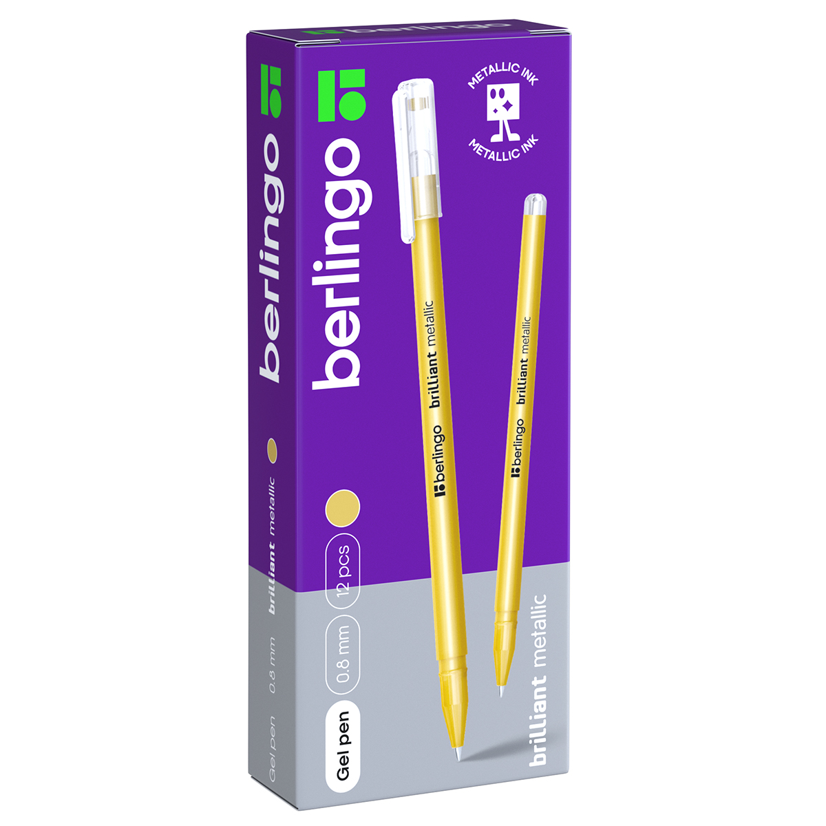 Ручка гелевая Berlingo Brilliant Metallic c золотым цветом чернил и эффектом металлик будет по душе тем, кто ценит всё неординарное. Ручка изготовлена с использованием корейских чернил, которые обеспечивают высокое качество письма и срок годности 2 года. Бархатистое покрытие soft-touch создаёт дополнительный комфорт при использовании. Цвет корпуса соответствует цвету чернил. Расширяя возможности для воплощения творческих задумок, производитель сделал ручку, подходящей для рисования и письма на чёрной бумаге. Диаметр пишущего узла 0,8 мм обеспечивает мягкость письма и насыщенность цвета.