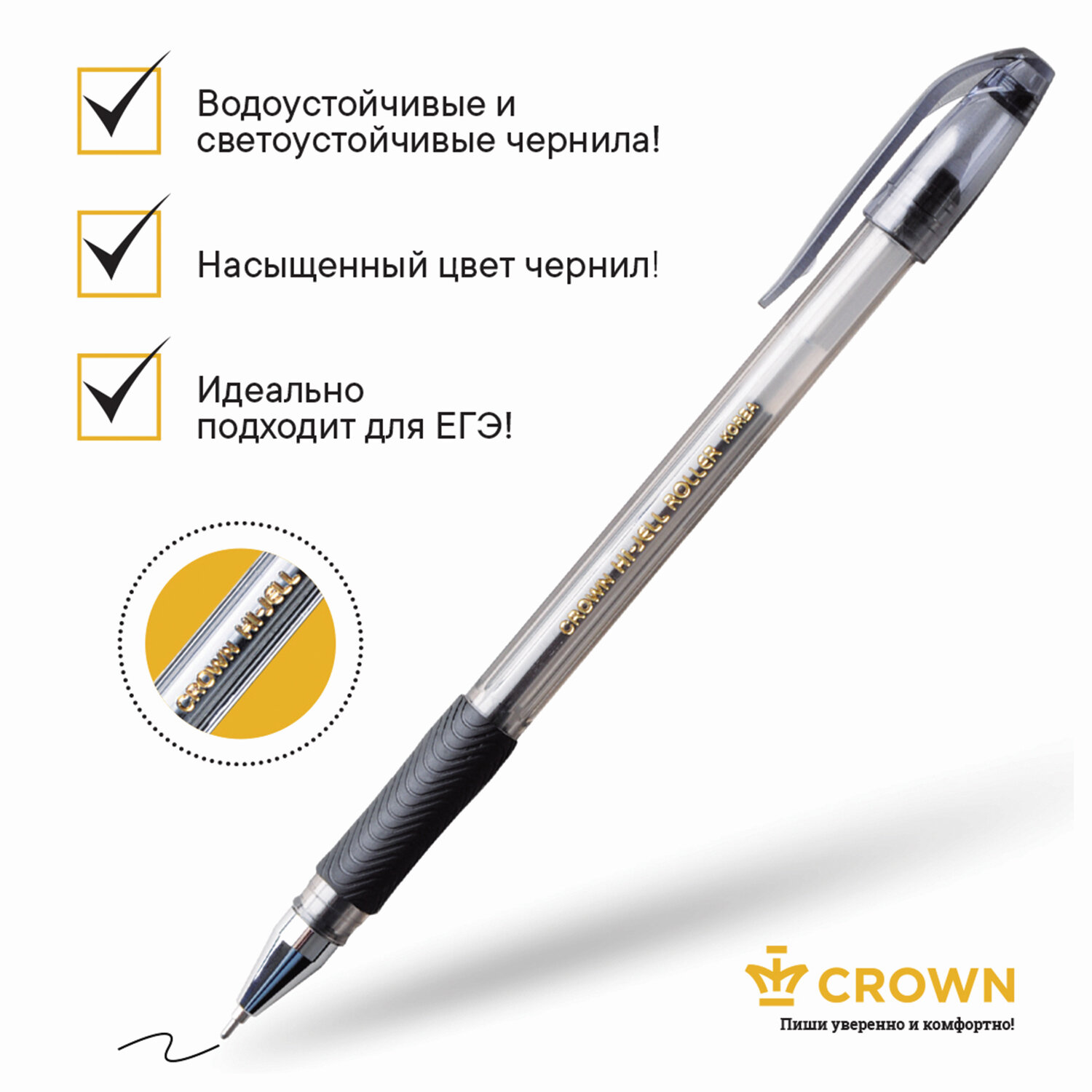 О товаре «Ручка гелевая с грипом CROWN "Hi-Jell Needle Grip", ЧЕРНАЯ, узел 0,7 мм, линия письма 0,5 мм, HJR-500RNB»