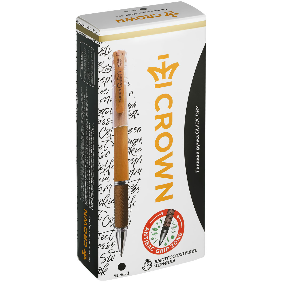 О товаре «Ручка гелевая Crown "Quick Dry" с быстросохнущими чернилами и антибактериальным грипом, черная, 0,5мм, корпус ассорти»