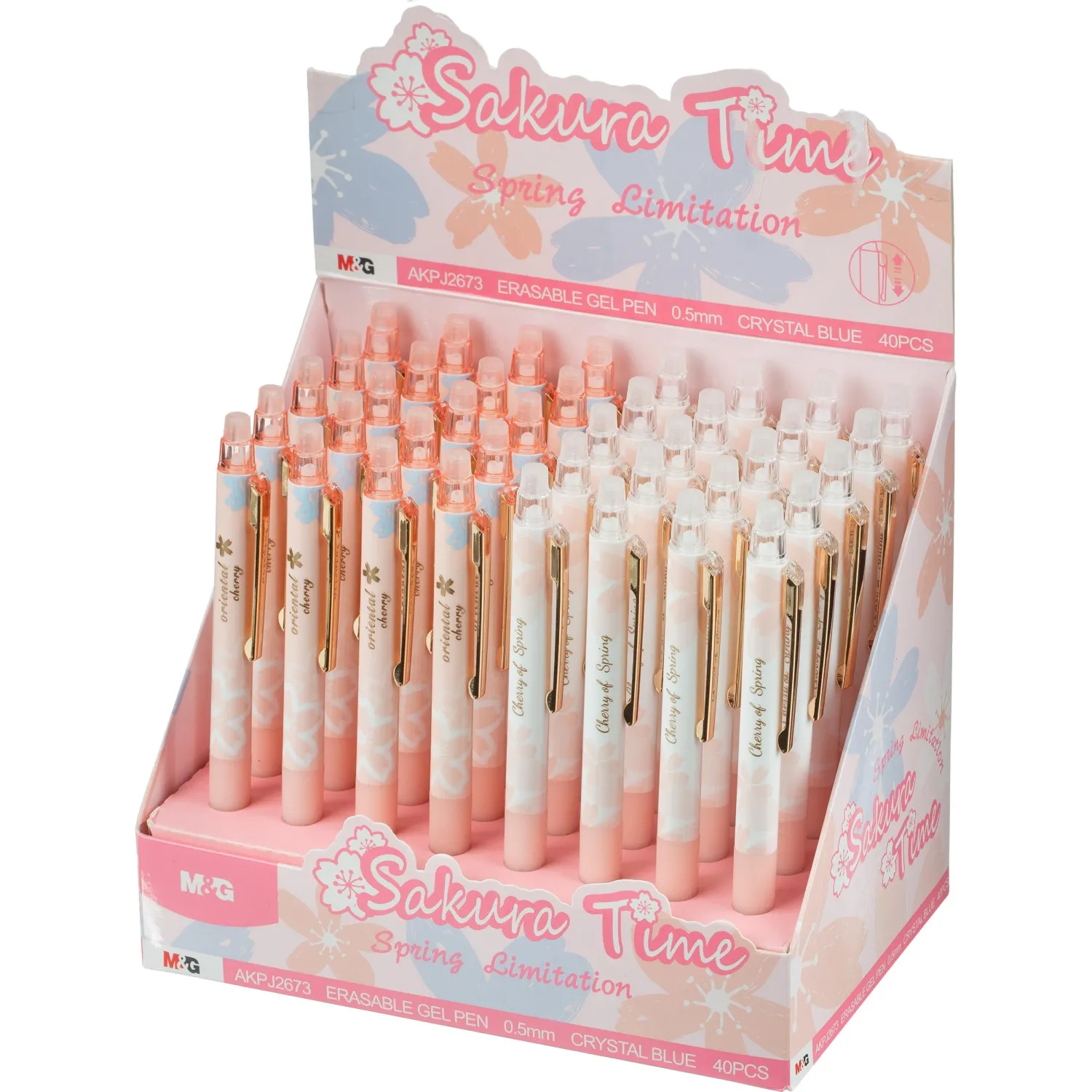 Ручка гелевая со стираемыми чернилами M&G Sakura Time синяя (толщина линии 0.35 мм)