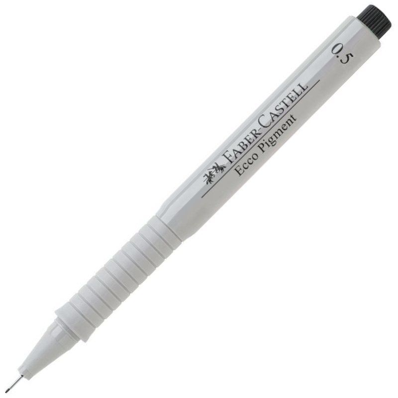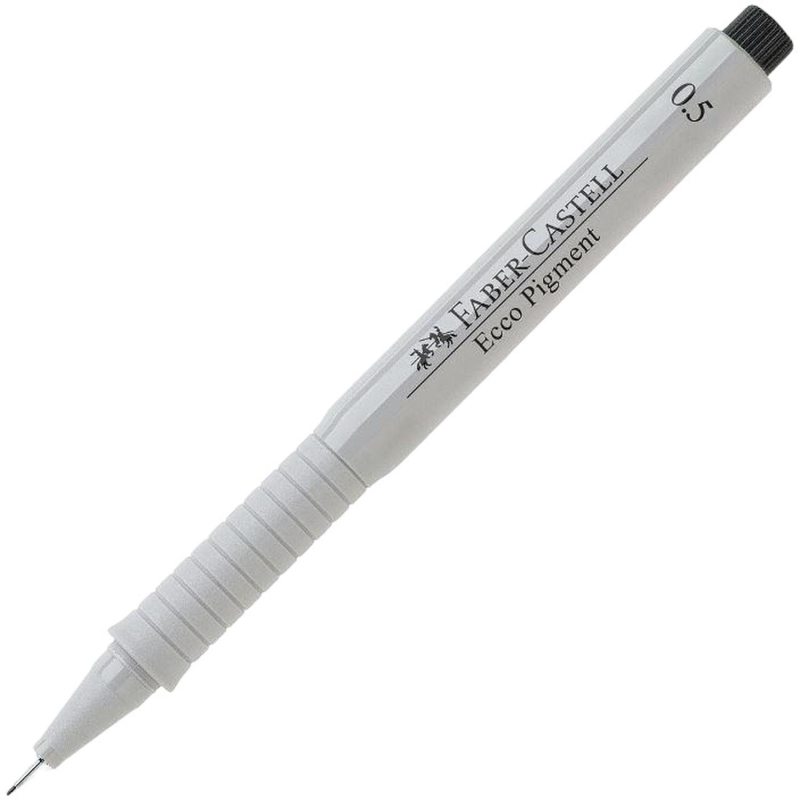 Капиллярная ручка (линер) серии Ecco Pigment от немецкого производителя Faber-Castell идеально подходит для письма, рисования, скетчинга, создания иллюстраций и черчения. Водостойкие, безкислотные, высокопигментированные чернила чёрного цвета обладают высокой светостойкостью и отлично пишут даже на прозрачной бумаге. Диаметр пишущего узла - 0,5 мм говорит о том, что изделие подходит для ультратонкого письма. Удлиненный пишущий узел в металлической оболочке надежен и очень удобен при работе с линейками и трафаретами, а также сохраняет свою форму даже после длительного использования. Эргономичная зона захвата снимает напряжение руки при длительном письме. Ручка оснащена колпачком с металлическим клипом, который позволит прикрепить ручку к ежедневнику или блокноту. Архивное качество чернил Ecco Pigment делает ручку идеальной для работы с важными документами.