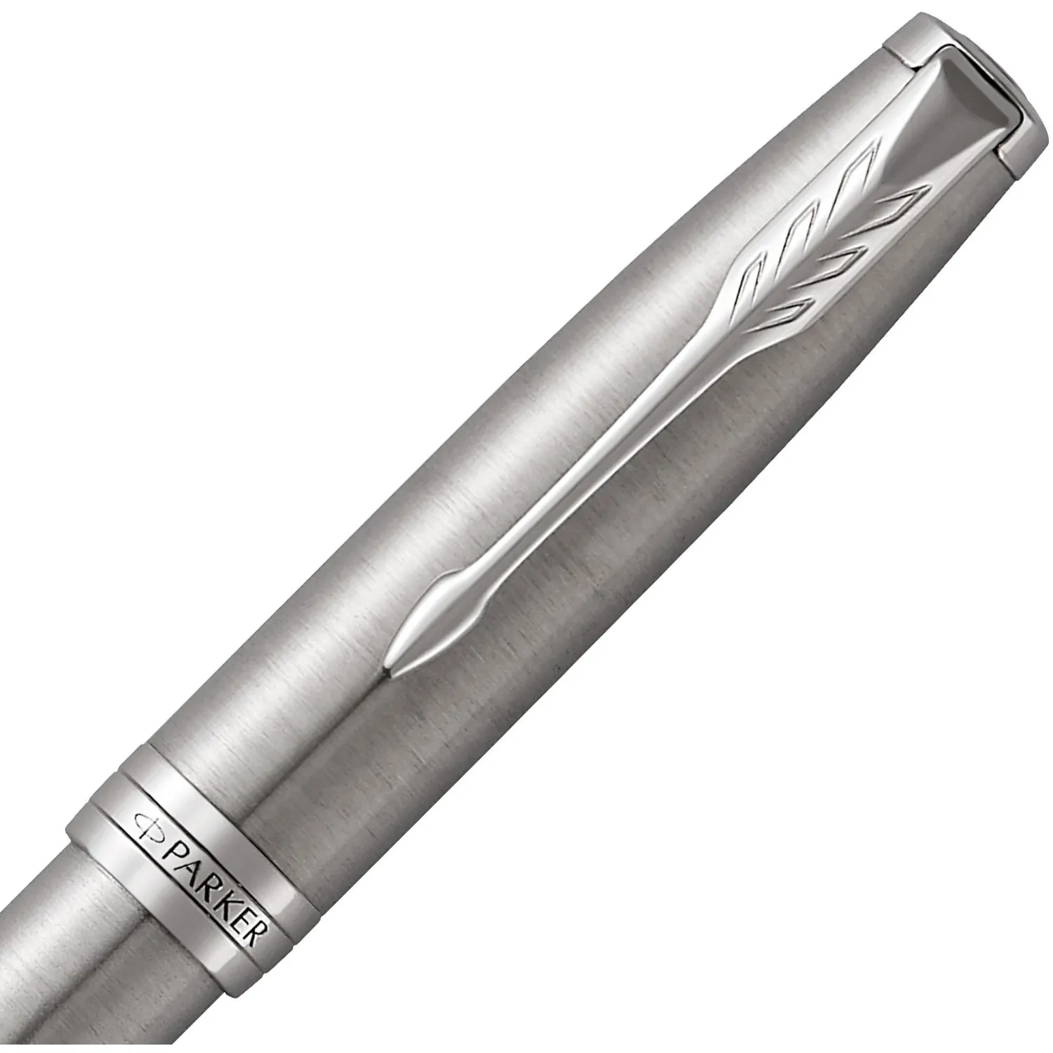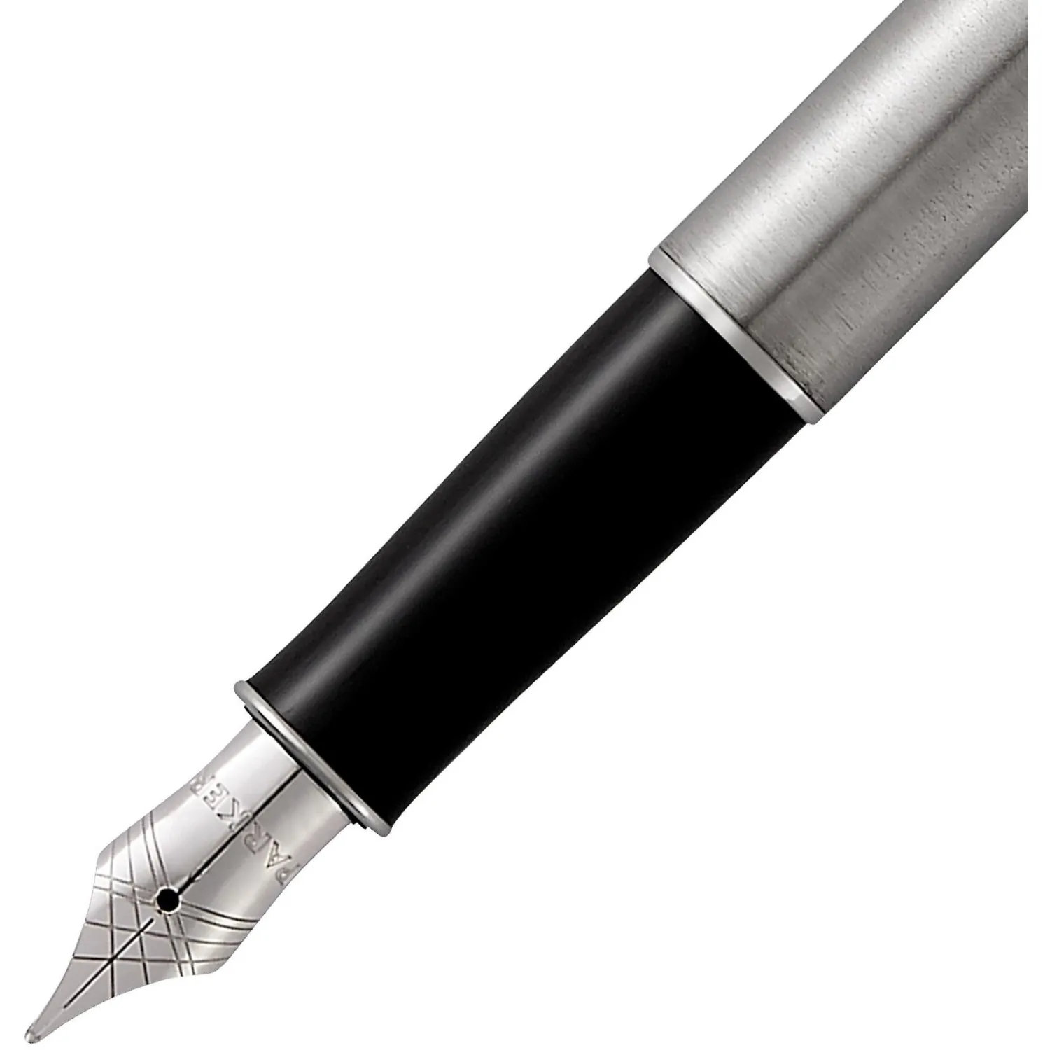 Перьевая ручка в корпусе из шлифованной нержавеющей стали и декоративными элементами, покрытыми палладием. Перо из нержавеющей стали. Ручка поставляется в комплекте с функциональным конвертером. ВНИМАНИЕ! С марта 2020г. подарочные коробки ручек ТМ Parker прекратили комплектоваться лифлетами (листовками с гарантийным талоном).