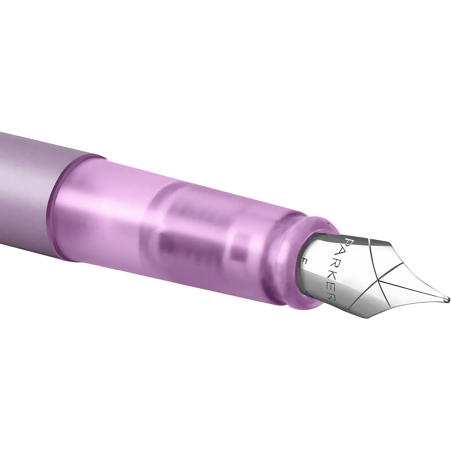 Ручка перьевая Parker "Vector XL Lilac" в подарочной упаковке - ручка из новой коллекции Parker Vector XL. Корпус ручки изготовлен из нержавеющей стали покрытой матовым лаком металлик. Зона захвата сделана из прозрачного пластика в цвет корпуса. На колпачке ручки выгравирован логотип Parker. Эмблема Parker также нанесена на торец колпачка. Размер корпуса ручки больше на 10% ручек прошлых серий Vector. ВНИМАНИЕ! С марта 2020г. подарочные коробки ручек ТМ Parker прекратили комплектоваться лифлетами (листовками с гарантийным талоном).