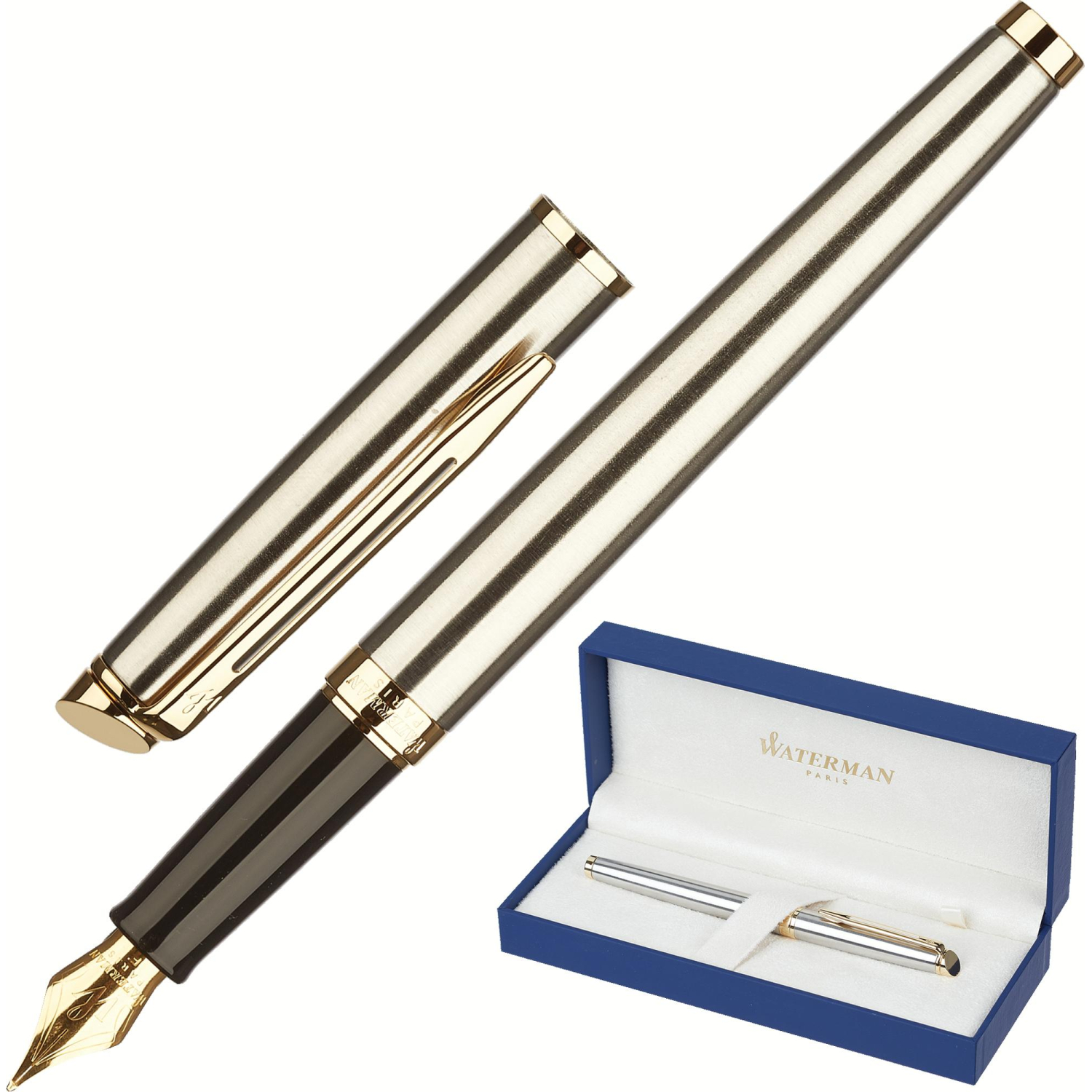 Перьевая ручка Waterman коллекции Hemisphere в подарочном футляре. Корпус и колпачок выполнены из нержавеющей полированной стали, декоративные детали покрыты