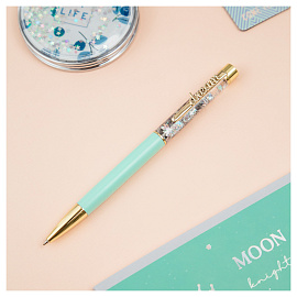 Шариковая ручка MESHU – это привлекательный аксессуар для ярких, смелых и успешных. Диаметр пишущего узла: 1 мм. Ручка подойдёт для мягкого и быстрого письма. Золотой корпус ручки из металла с мятным матовым эффектом украшен вставкой с серебряной фольгой и дополнен металлическим клипом с надписью "Dream", с помощью которого ручку можно закрепить на одежде или ежедневнике.