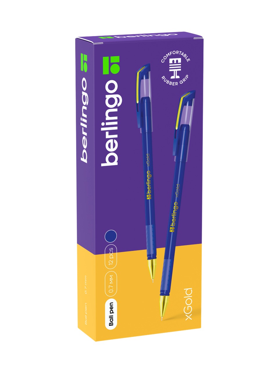 Ручка шариковая Berlingo xGold – это флагманская модель ассортимента Berlingo. 12 штук в упаковке. Цвет чернил: синий. Толщина линии письма: 0,5 мм. Длина письма: 850 м. Не раз становилась официальной ручкой «Тотального диктанта» – ежегодной образовательной акции популяризации грамотности. Кроме того, xGold является обладателем премии «Выбор канцелярского рынка 2018». Ручка оснащена вентилируемым колпачком, который обеспечивает безопасность при использовании детьми. Удобный пластиковый клип позволяет закрепить ручку, например, на ежедневнике или тетради. Мягкий резиновый грип препятствует скольжению пальцев и обеспечивает комфортное письмо. Диаметр пишущего узла составляет 0,7 мм, благодаря чему ручка прекрасно подходит для любого стиля письма.