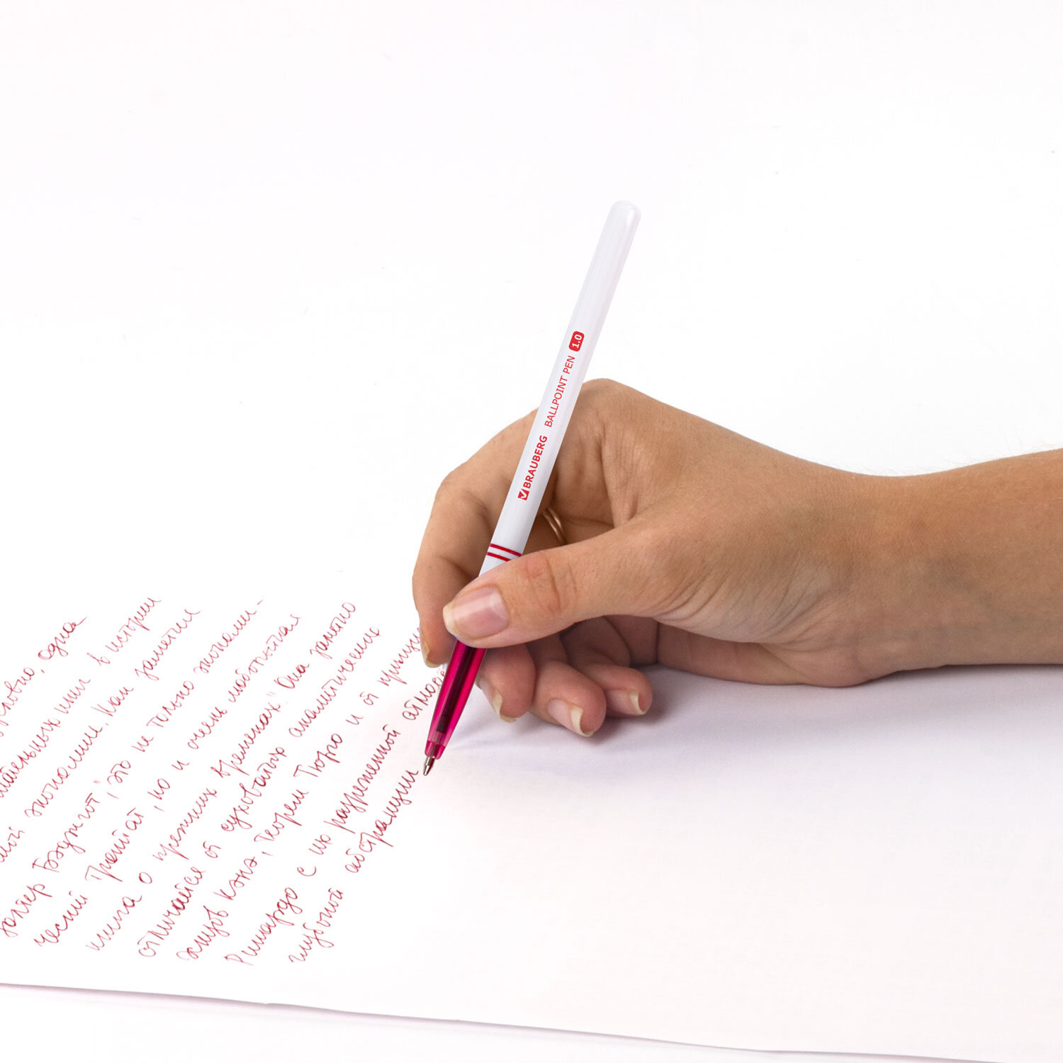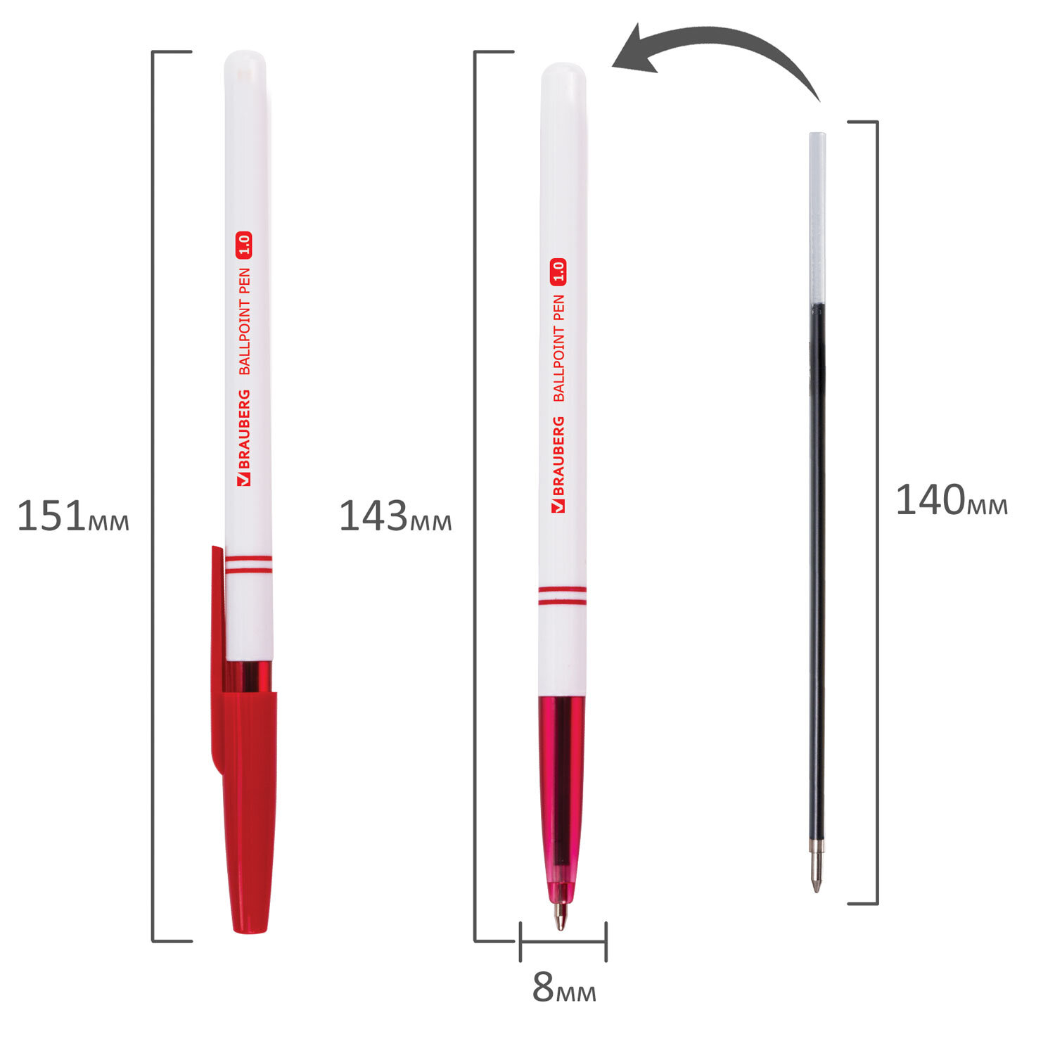 О товаре «Ручка шариковая BRAUBERG "Офисная", КРАСНАЯ, корпус белый, узел 1 мм, линия письма 0,5 мм, 140892»