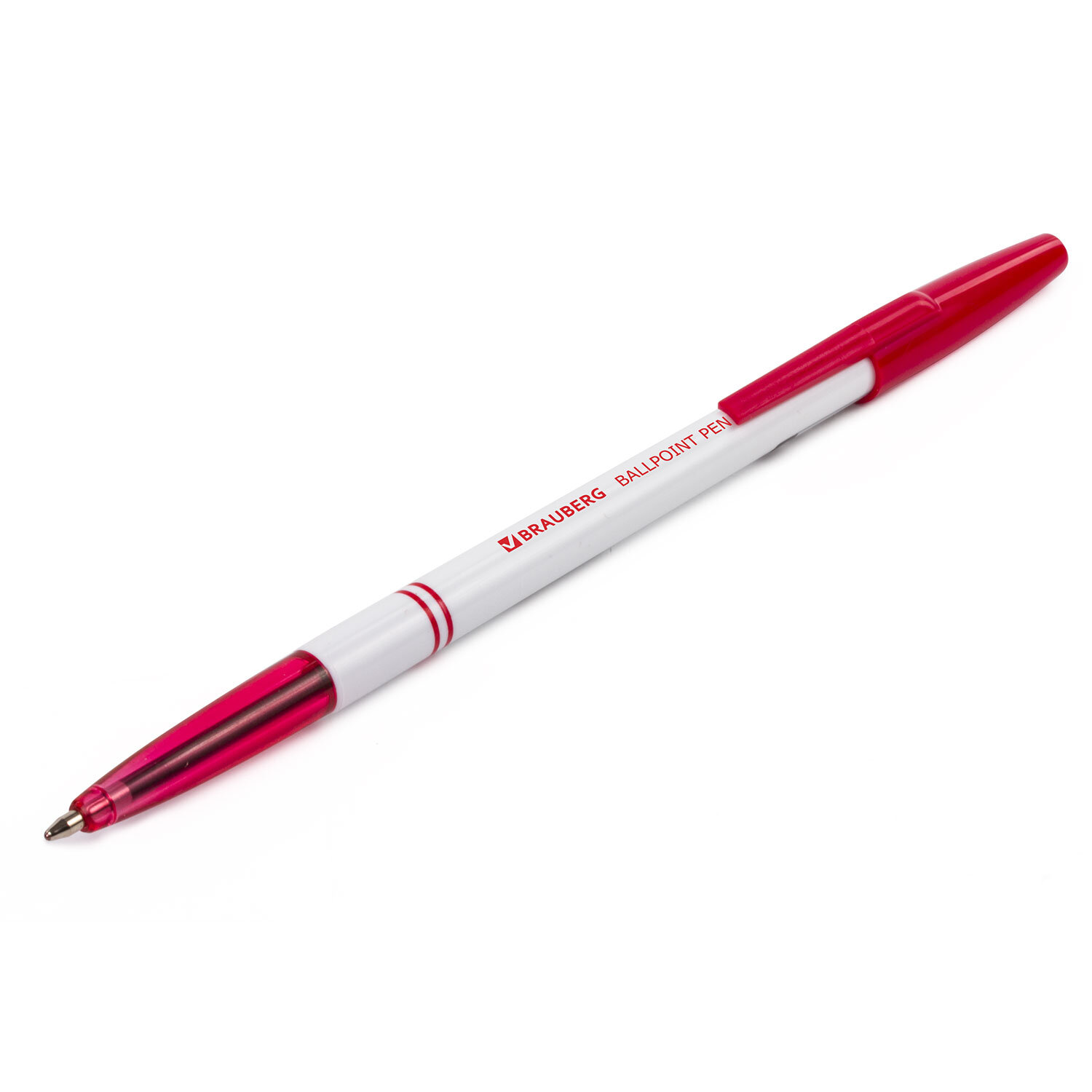 Ручка шариковая BRAUBERG "Офисная", КРАСНАЯ, корпус белый, узел 1 мм, линия письма 0,5 мм, 140892