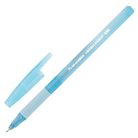 Шариковая ручка с прозрачным корпусом и рифлением в зоне захвата, препятствующим скольжению пальцев при письме. Ручка снабжена чернилами синего цвета на масляной основе, обеспечивающими непревзойденно легкое и мягкое письмо. Диаметр пишущего узла 0,7 мм создает тонкую линию письма равную 0,35 мм.