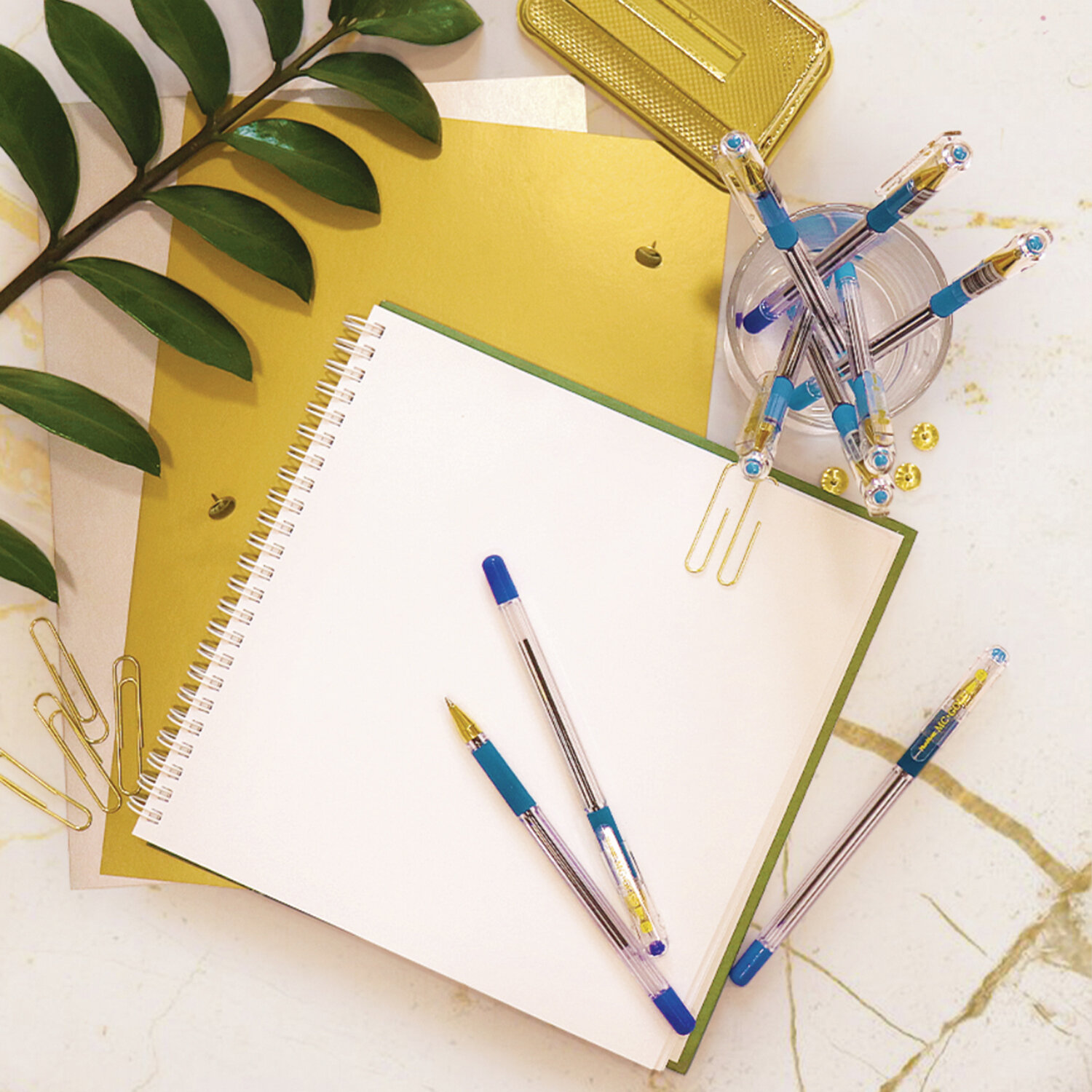 Легендарная шариковая ручка MunHwa MC Gold - одна из самых узнаваемых шариковых ручек. Диаметр пишущего узла составляет 0,5 мм. Толщина линии письма – 0,3 мм, а длина линии письма – 1200 м. Ручки упакованы в картонную коробку по 12 штук. Ручка проработана до мельчайших деталей: прозрачный шестигранный корпус диаметром 8,3 мм отлично сочетается с золотым наконечником и ребристым противоскользящим грипом под синий цвет чернил. Уникальные чернила на масляной основе обеспечивают мягкое, ровное письмо и уверенное скольжение по бумаге. У ручки MunHwa MC Gold есть возможность менять стержень, она многоразовая. Сочетание комфортного письма и безупречного стильного дизайна сделало её абсолютным лидером российского рынка.