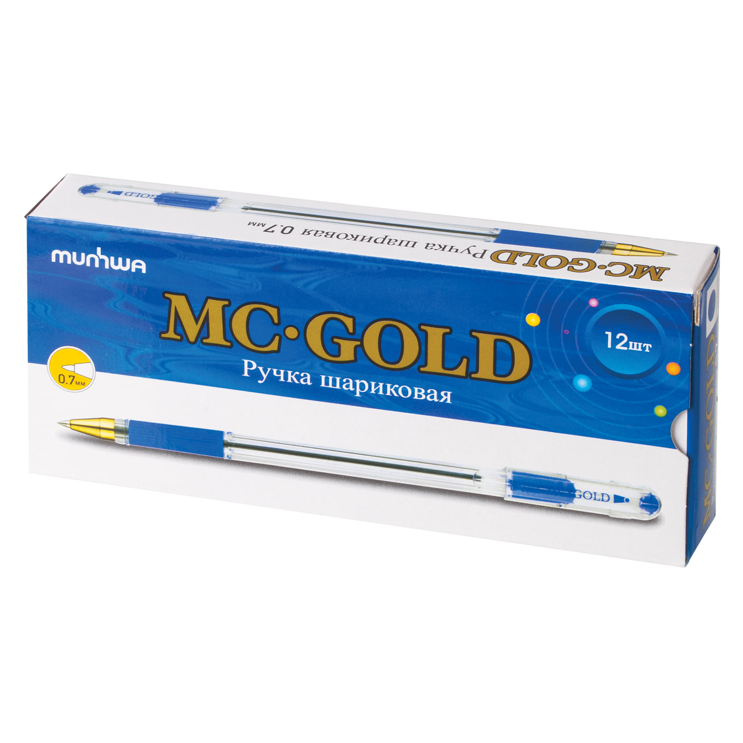 Легендарная шариковая ручка MunHwa MC Gold – одна из самых узнаваемых шариковых ручек. Диаметр пишущего узла составляет 0,7 мм. Толщина линии письма – 0,5 мм, а длина линии письма – 1000 м. Ручки упакованы в картонную коробку по 12 штук. Ручка проработана до мельчайших деталей: тонированный синий шестигранный корпус диаметром 8,3 мм отлично сочетается с золотым наконечником и ребристым противоскользящим грипом под синий цвет чернил. Уникальные чернила на масляной основе обеспечивают мягкое, ровное письмо и уверенное скольжение по бумаге. У ручки MunHwa MC Gold есть возможность менять стержень, она многоразовая. Сочетание комфортного письма и безупречного стильного дизайна сделало её абсолютным лидером российского рынка.