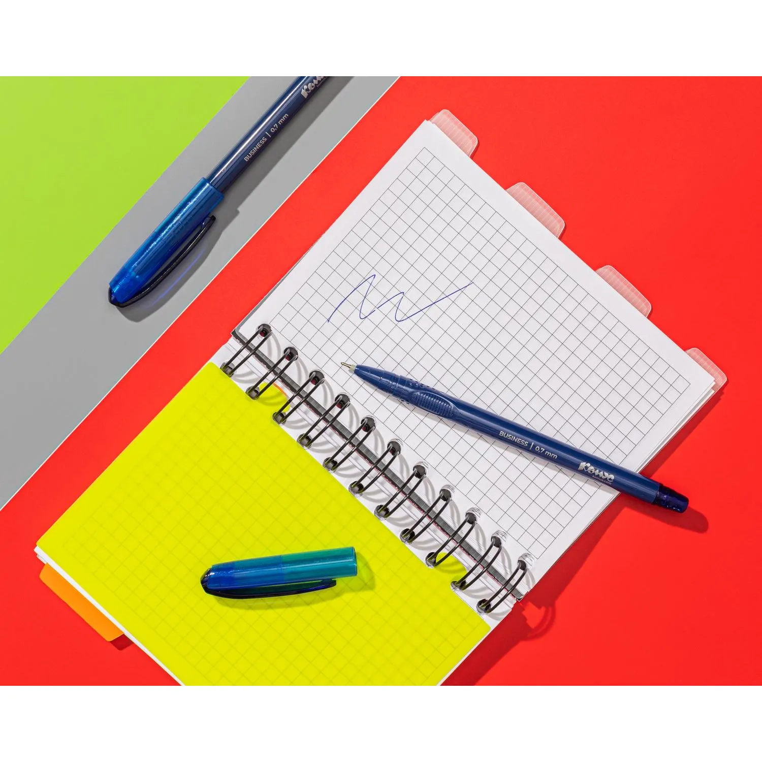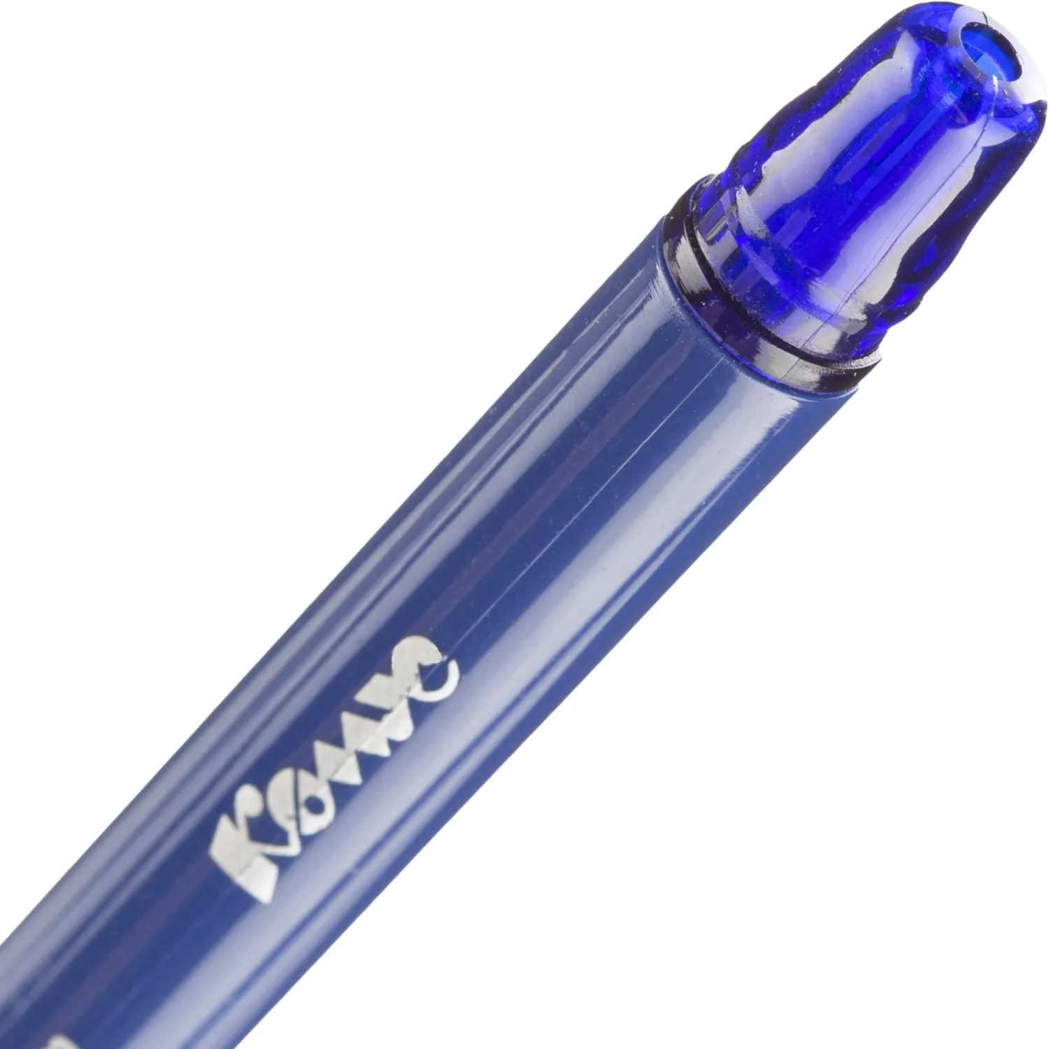 Модель корпуса изготовлена из пластика синего цвета, имеет круглую форму. Сменный стержень длиной 129 мм снабжен игольчатым наконечником заправлен высококачественными чернилами на масляной основе синего цвета. Эргономичная форма ручки способствует правильному положению пальцев во время письма. Диаметр пишущего узла 1 мм создает тонкую линию письма, равную 0,7 мм. Ручка Комус Business идеально подойдет для каждодневного использования.