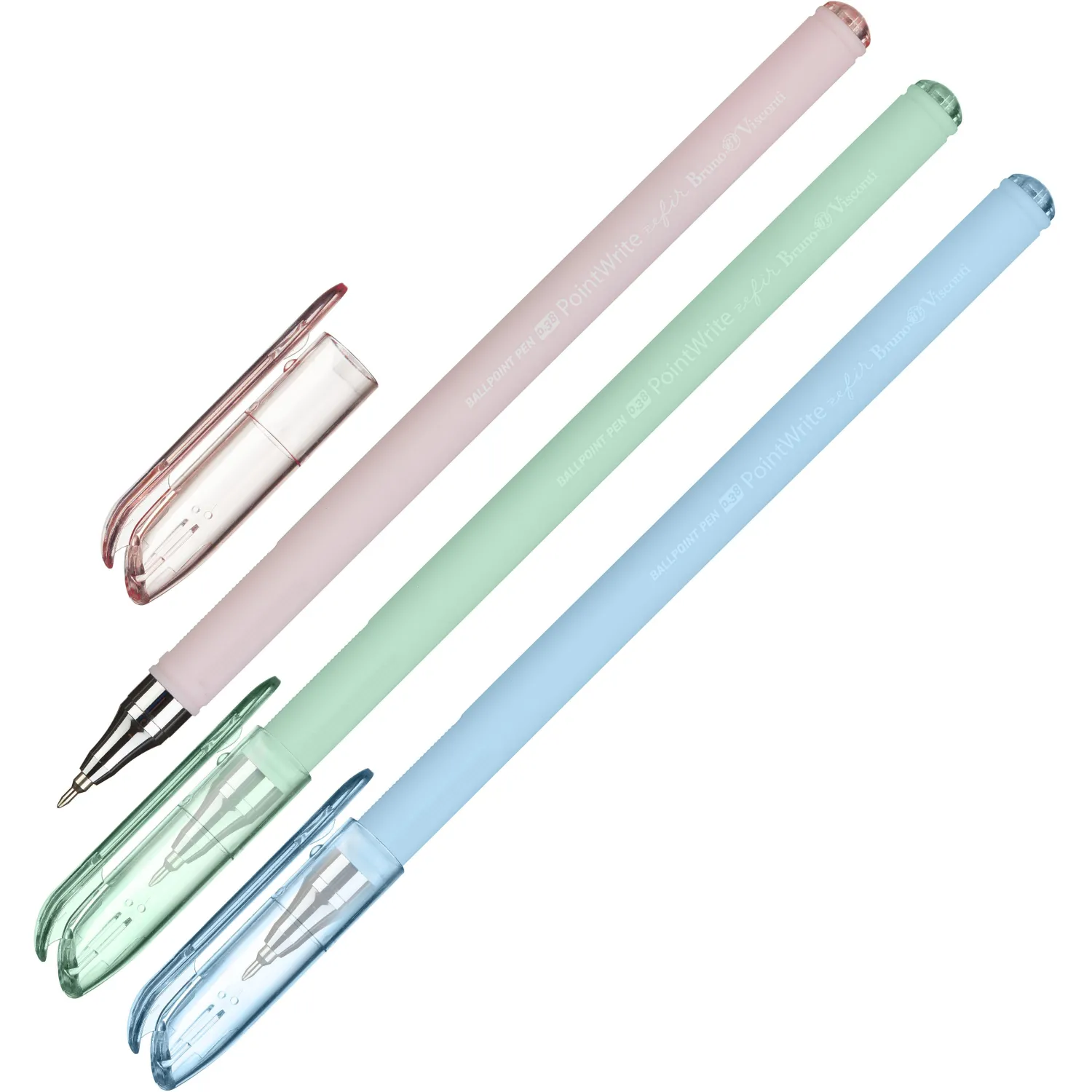 Ручка шариковая неавтоматическая PointWrite Zefir. Корпус ручки выполнен из прочного пластика с текстурированной поверхностью, специальное покрытие: корпус Silk touch. Цвет корпуса: голубой, розовый, зеленый. Форма корпуса — круглая. Длина сменного стержня: 140 мм. Толщина линии письма: 0,38 мм. Диаметр пишущего узла 0,38 мм. Форма наконечника — полуигольчатая. Пигментные чернила Dokumental синего цвета. Ручка имеет возможность замены стержня, что означает многократное использование. Расходные материалы для данной ручки не представлены в ассортименте производителя и в ассортименте компании Комус.
