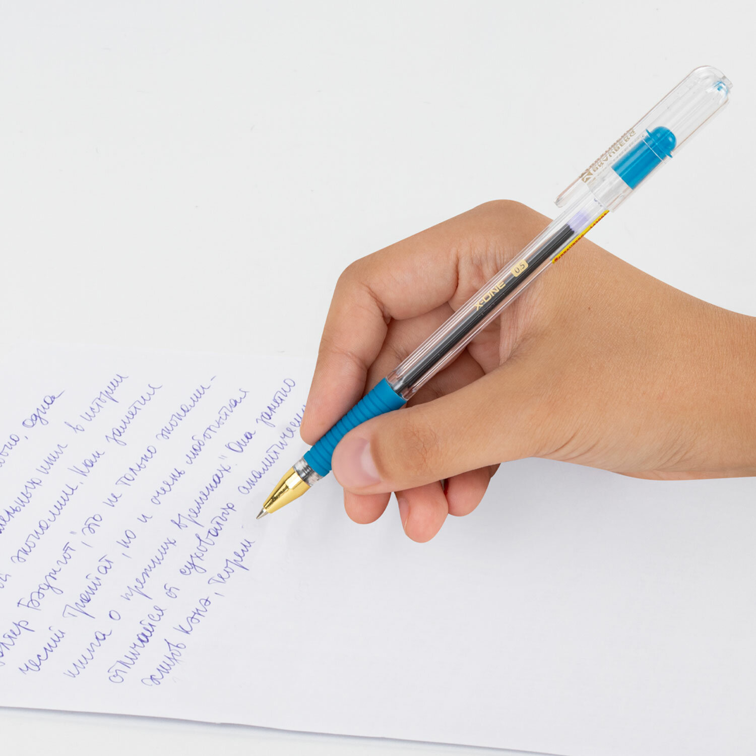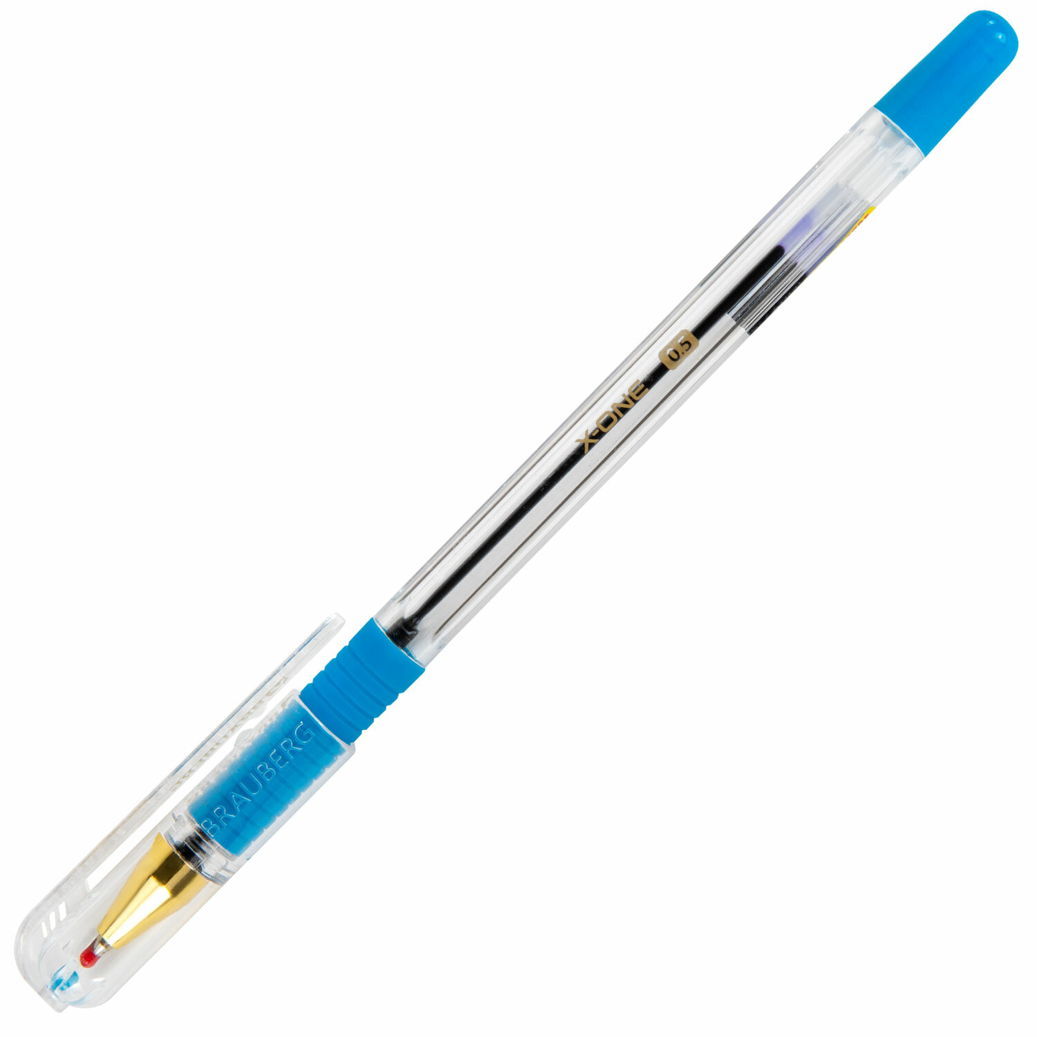 О товаре «Ручка шариковая с грипом BRAUBERG "X-ONE", СИНЯЯ, корпус прозрачный, узел 0,5 мм, линия письма 0,35 мм, 143985»