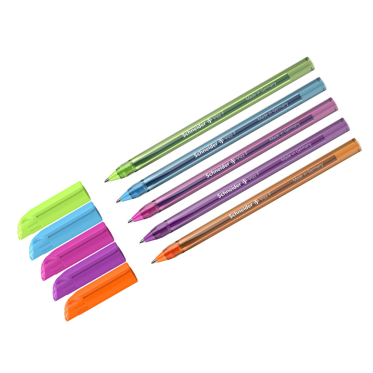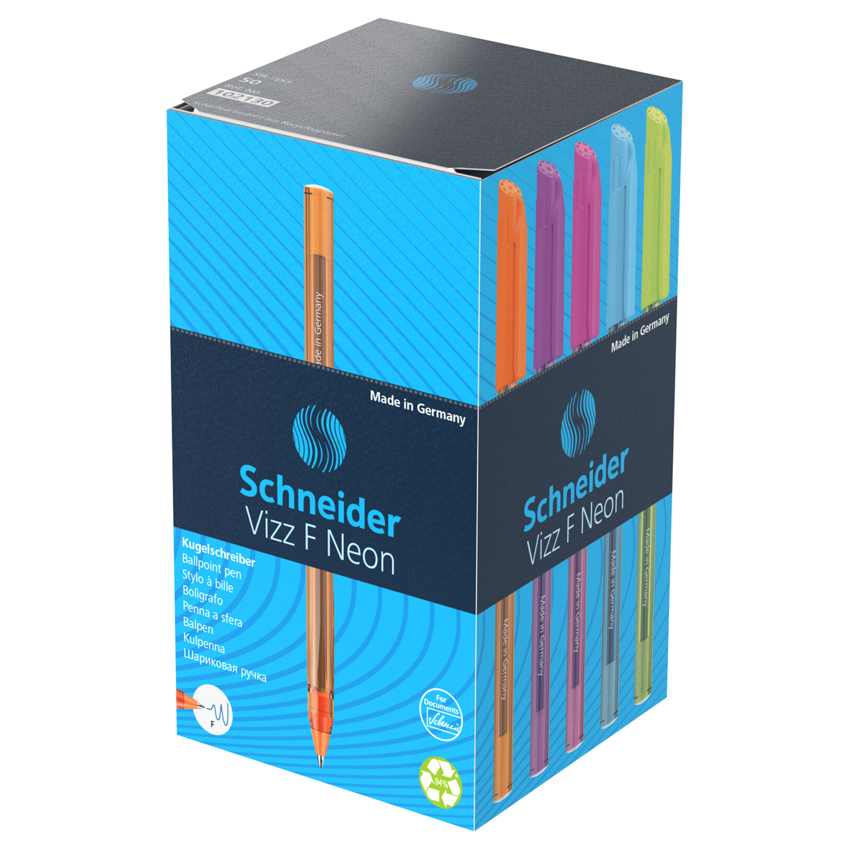 Ручка шариковая Schneider "Vizz F Neon" синяя, 0,8мм, прозрачный корпус неон ассорти