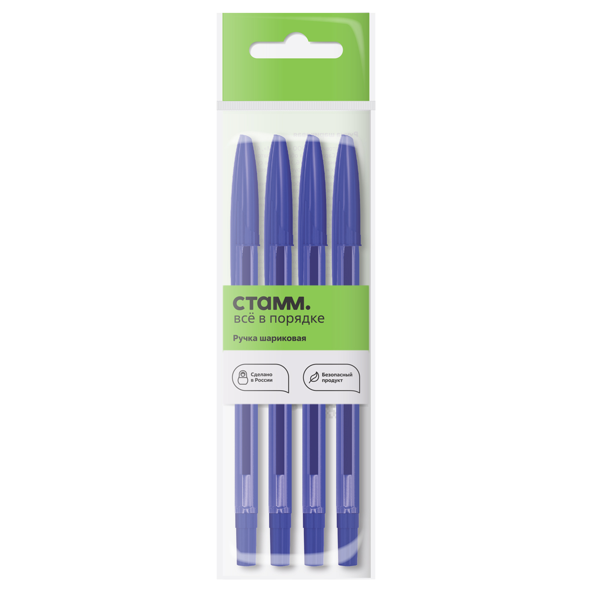 О товаре «Ручка шариковая СТАММ "111" 4шт., синие, 1,0мм, тонированный корпус, пакет с европодвесом»