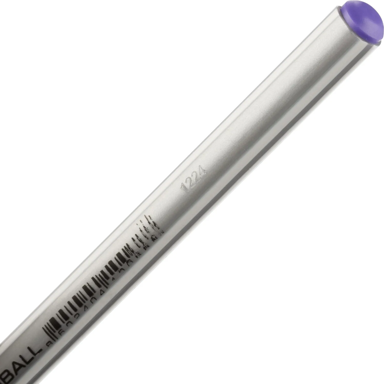 Шариковая ручка с эргономичным трёхгранным корпусом удобно лежит в руке и обеспечивает уверенный захват при письме. Прочный серый пластиковый корпус с вентилируемым колпачком, окрашенным в цвет фиолетовых чернил, устойчив к механическим и химическим воздействиям. Игольчатый металлический наконечник с шариком диаметром 1 мм создаёт ровную линию толщиной 0.7 мм. Масляные чернила нового поколения с высокой текучестью наносятся мягко и ярко, не замерзают при низких температурах. Стержень длиной 145 мм не заменяется. Длина письма достигает 1750 м.