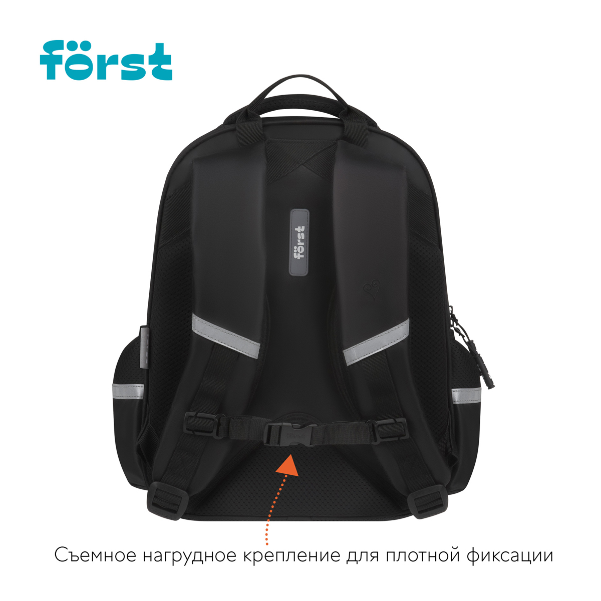 Рюкзак Först серии F-Comfy Best friends — отличный выбор для детей младшего и среднего школьного возраста. Имеет два отделения и три кармана, в которые поместится всё необходимое. Размер — 38*29*15 см. Внутри — органайзер для канцтоваров и съемный карабин для ключей. Рюкзак сделан из высококачественного твила — износостойкого материала. Модель весит не более 750 граммов и вмещает до 16,5 литров. Жесткая эргономичная спинка равномерно распределяет нагрузку без вреда для осанки. Спонжевые вставки, покрытые мягким вентиляционным материалом, обеспечивают комфорт, а также предотвращают запотевание спины ребенка. Нагрудное крепление плотно фиксирует рюкзак, не дает лямкам спадать с плеч во время движения. Высота крепления регулируется. Дно рюкзака покрыто водонепроницаемым материалом для защиты содержимого от влаги и легкого ухода за изделием. На изделии есть светоотражающие элементы — для безопасного движения ребёнка в тёмное время суток. Рюкзак закрывается на пластиковую молнию с удобными бегунками. Изделие упаковано в пакет.