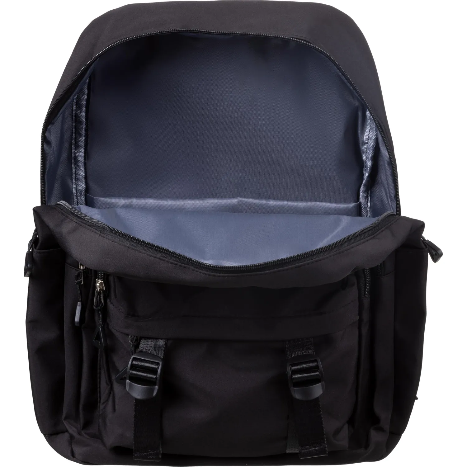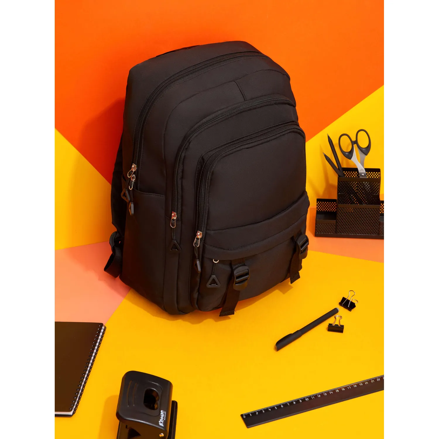 Рюкзак подходит для повседневного использования в городе. Он выполнен из прочного нейлона, устойчивого к влаге и механическим повреждениям. Универсальный чёрный цвет делает модель подходящей для разных стилей одежды.