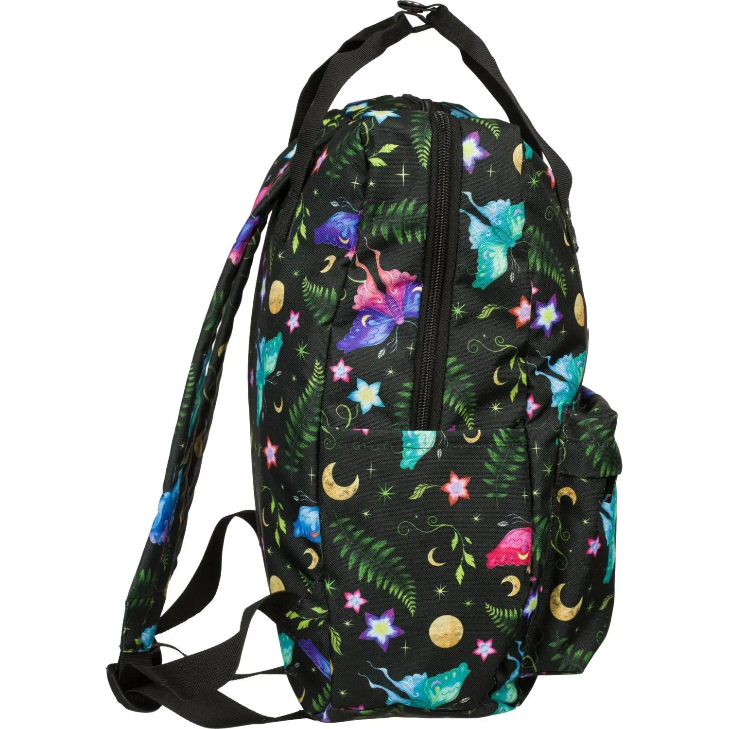 Эргономичная сумка для переноса учебных материалов, предназначенная для учениц средних классов и студенток. Рюкзак выполнен из полиэстера и имеет одно основное отделение с тремя карманами для удобного хранения вещей. Дизайн сумки выполнен в чёрном цвете с изображением волшебного леса, что придаёт рюкзаку уникальный и стильный вид.