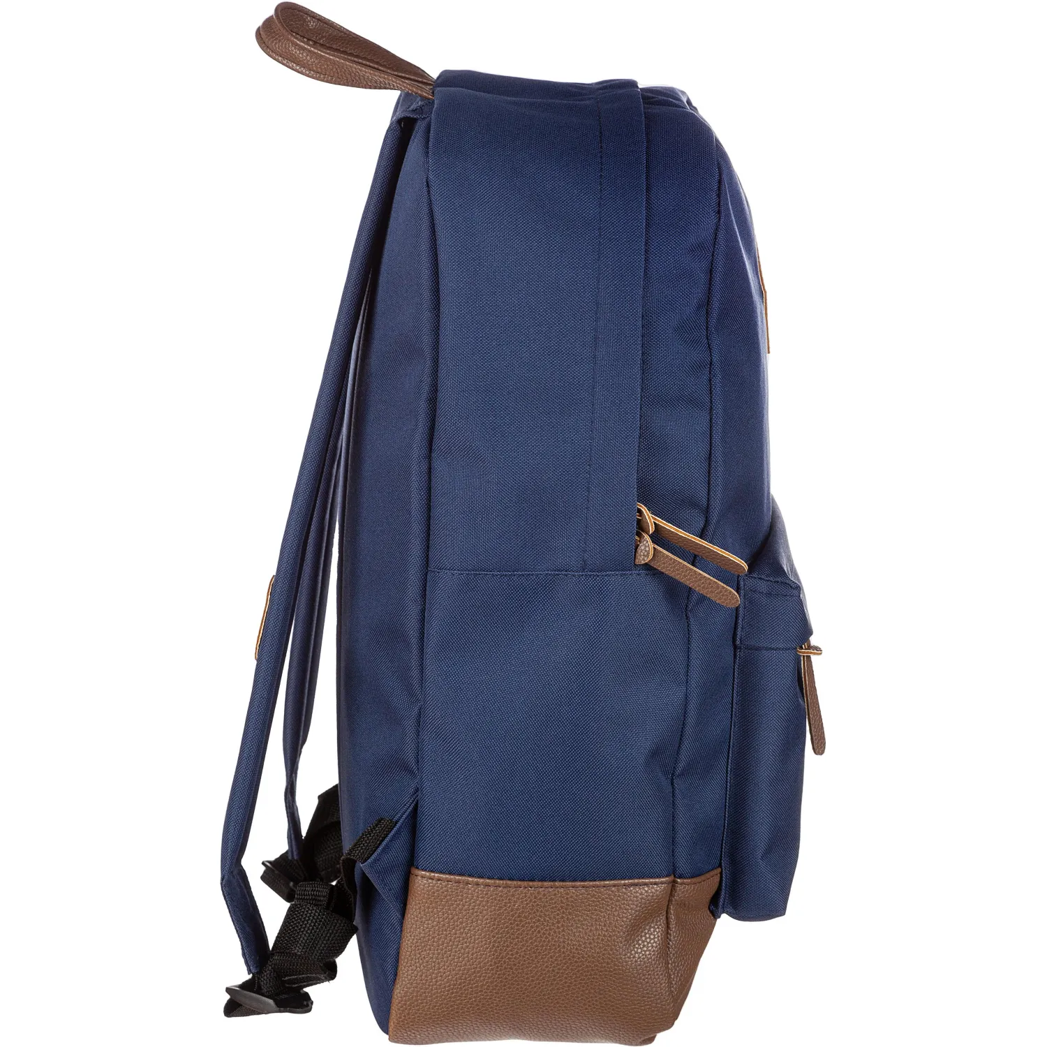 Молодёжный рюкзак подходит как для девушек, так и для юношей. Он выполнен из полиэстера и дополнен вставками из кожзаменителя. Спереди находится карман на молнии для удобного хранения мелких вещей. Рюкзак оснащён мягкой спинкой и регулируемыми лямками.
