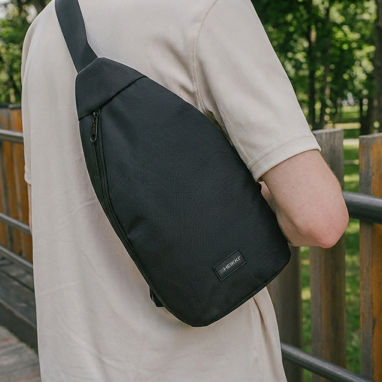 Рюкзак однолямочный HEIKKI SMOOTH (ХЕЙКИ), 2 отделения, черный, 35x20x8 см, 273918