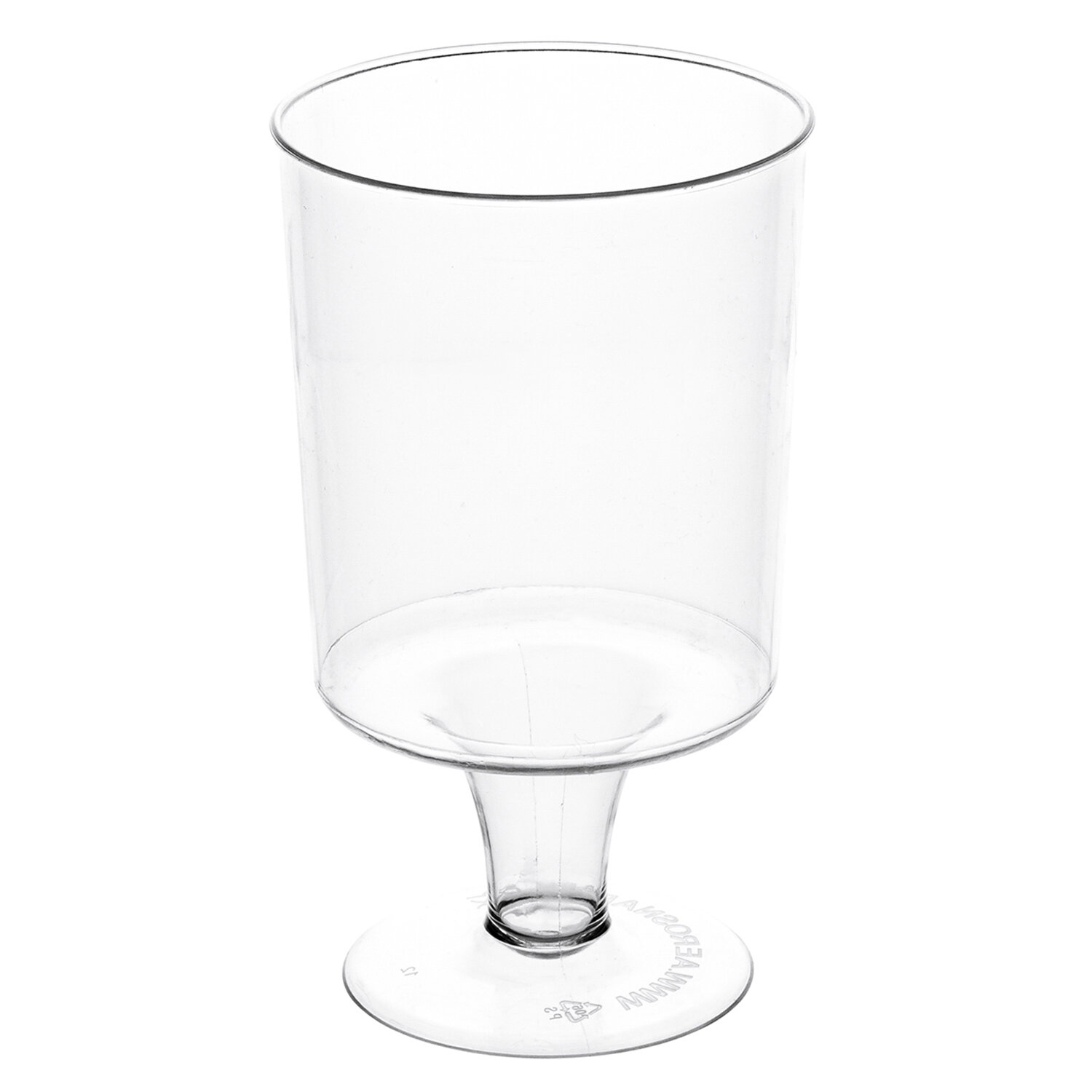 Одноразовые рюмки изготовлены из полистирола (ПС), который отличается прозрачностью и легким весом. Имеют классический дизайн на ножке, напоминающий стеклянную посуду. Высота изделия – 90 мм, диаметр – 90 мм, объём – 100 мл.