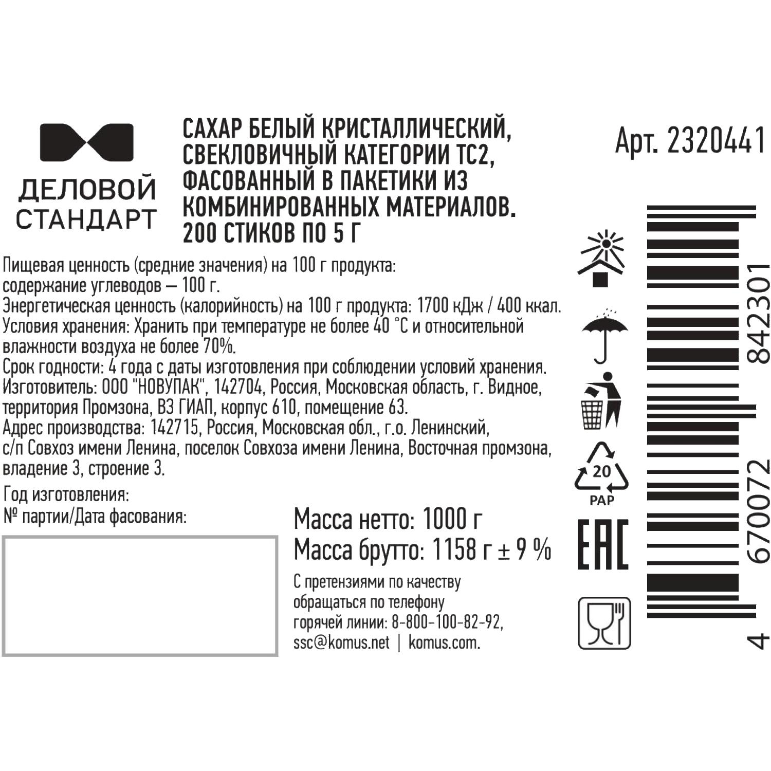 Сахар порционный Деловой Стандарт 1 кг (200 стиков в упаковке)