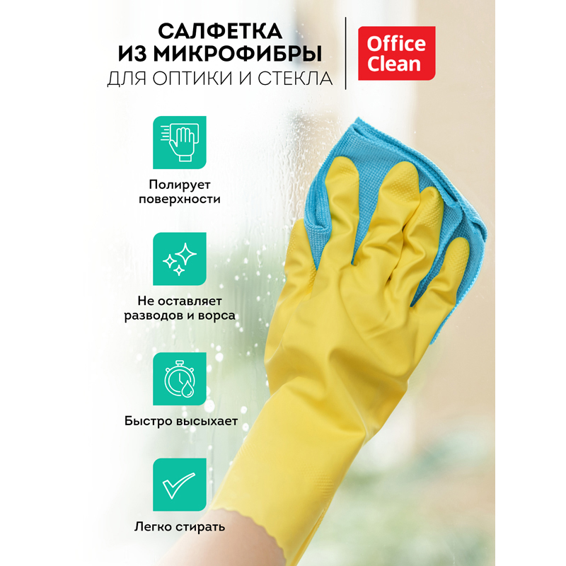 О товаре «Салфетка для оптики и стекла OfficeClean, плотная микрофибра, 30*30см, синяя»