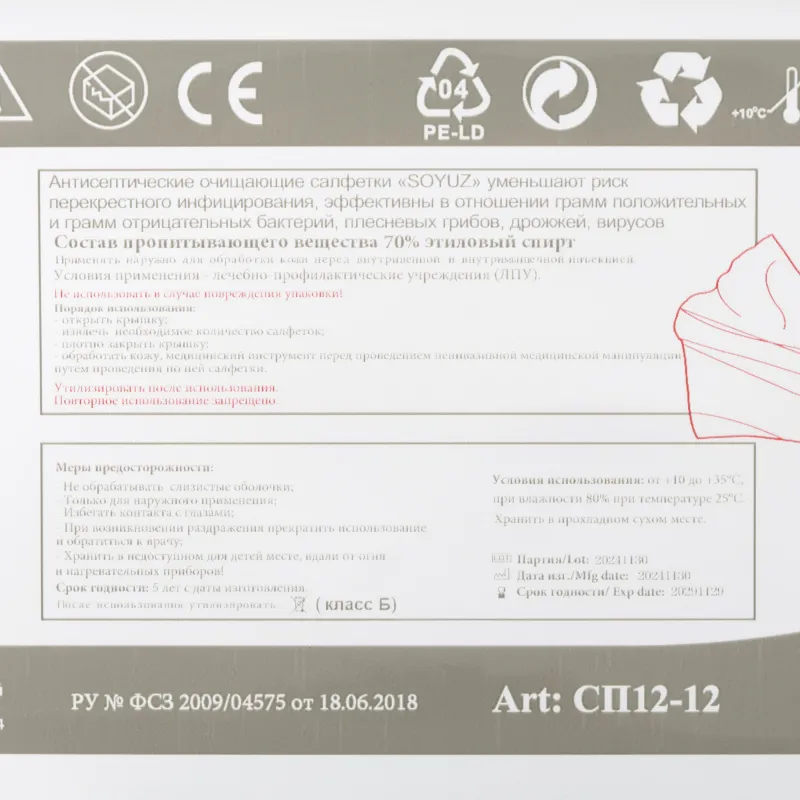 О товаре «Салфетка антисептическая для инъекций Unicornmed Soyuz спиртовая 200x130 мм (110 штук в упаковке)»