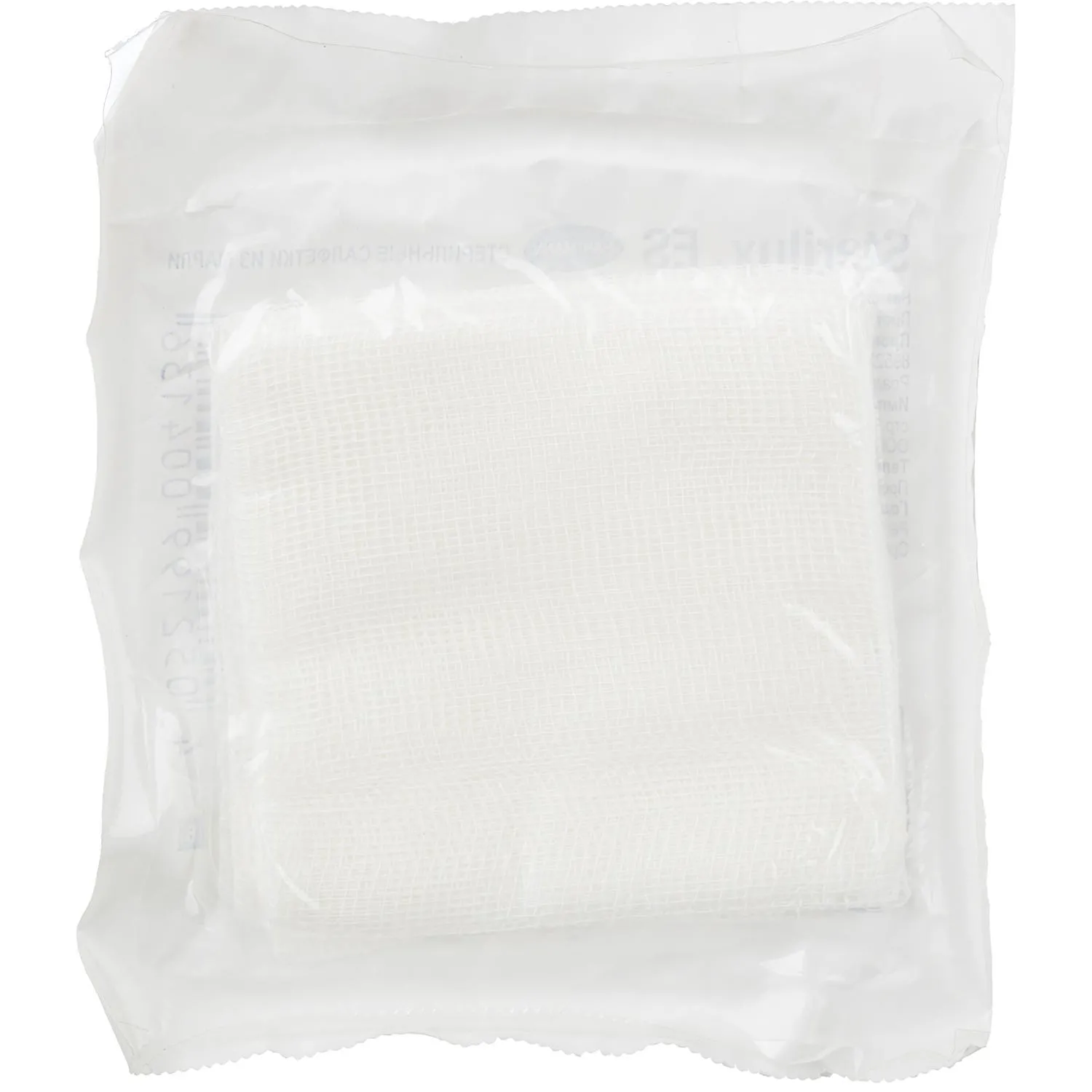 Изделие изготовлено из отбелённой медицинской марли из 100% хлопка плотностью 32 г/кв.м, соответствующей 17 нитям по европейскому классификатору. Салфетка имеет квадратную форму размером 7.5×7.5 см и состоит из 8 слоёв, края которых аккуратно загнуты внутрь для предотвращения осыпания волокон и обеспечения безопасности при контакте с раной. Стерилизация проводится радиационным методом, что подтверждается наличием протокола и инструкции по радиационной стерилизации медицинских изделий.