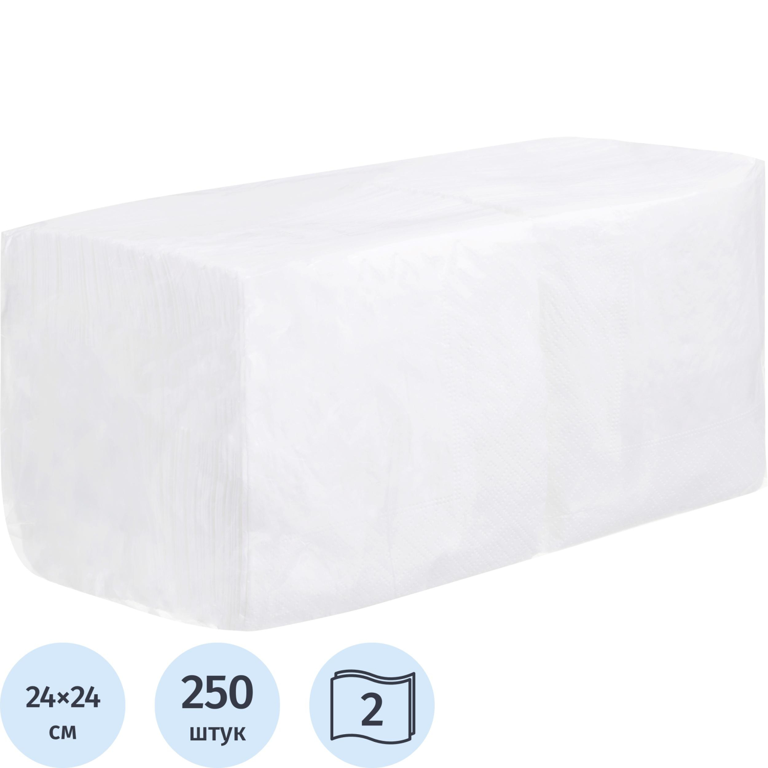 Салфетки бумажные Zelpaper 2-слойные 24×24 см белые (250 листов в пачке)