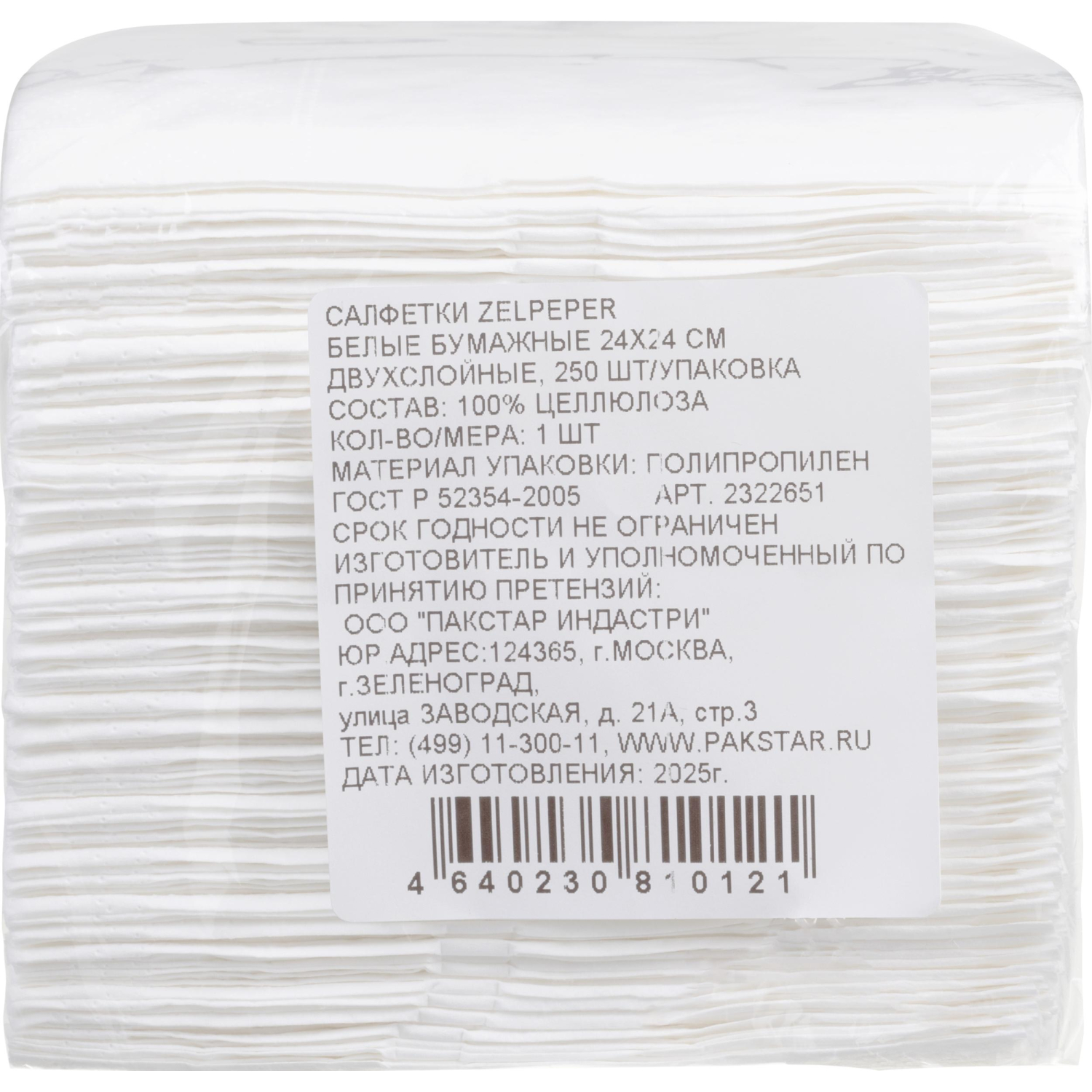 Салфетки бумажные Zelpaper 24х24см 2сл белые 250 шт/уп