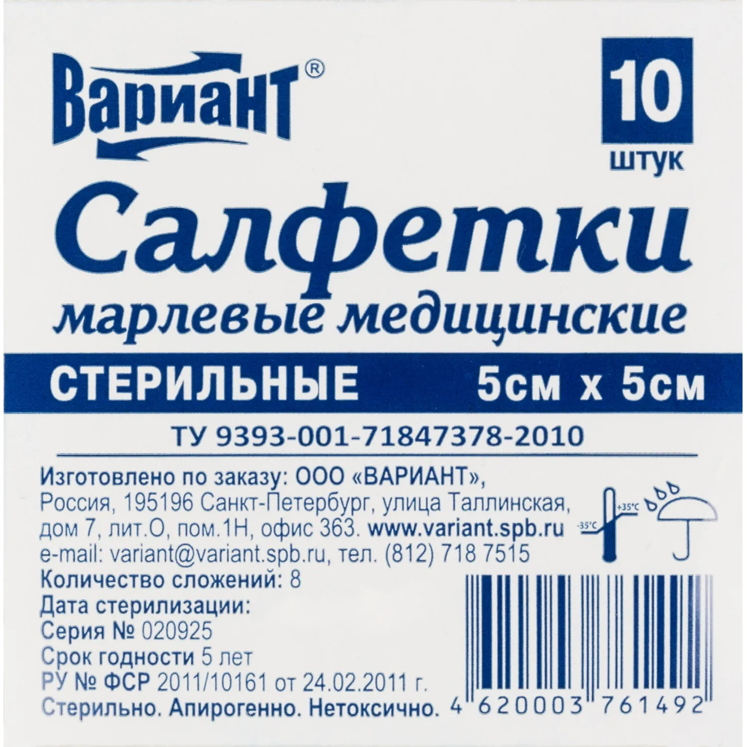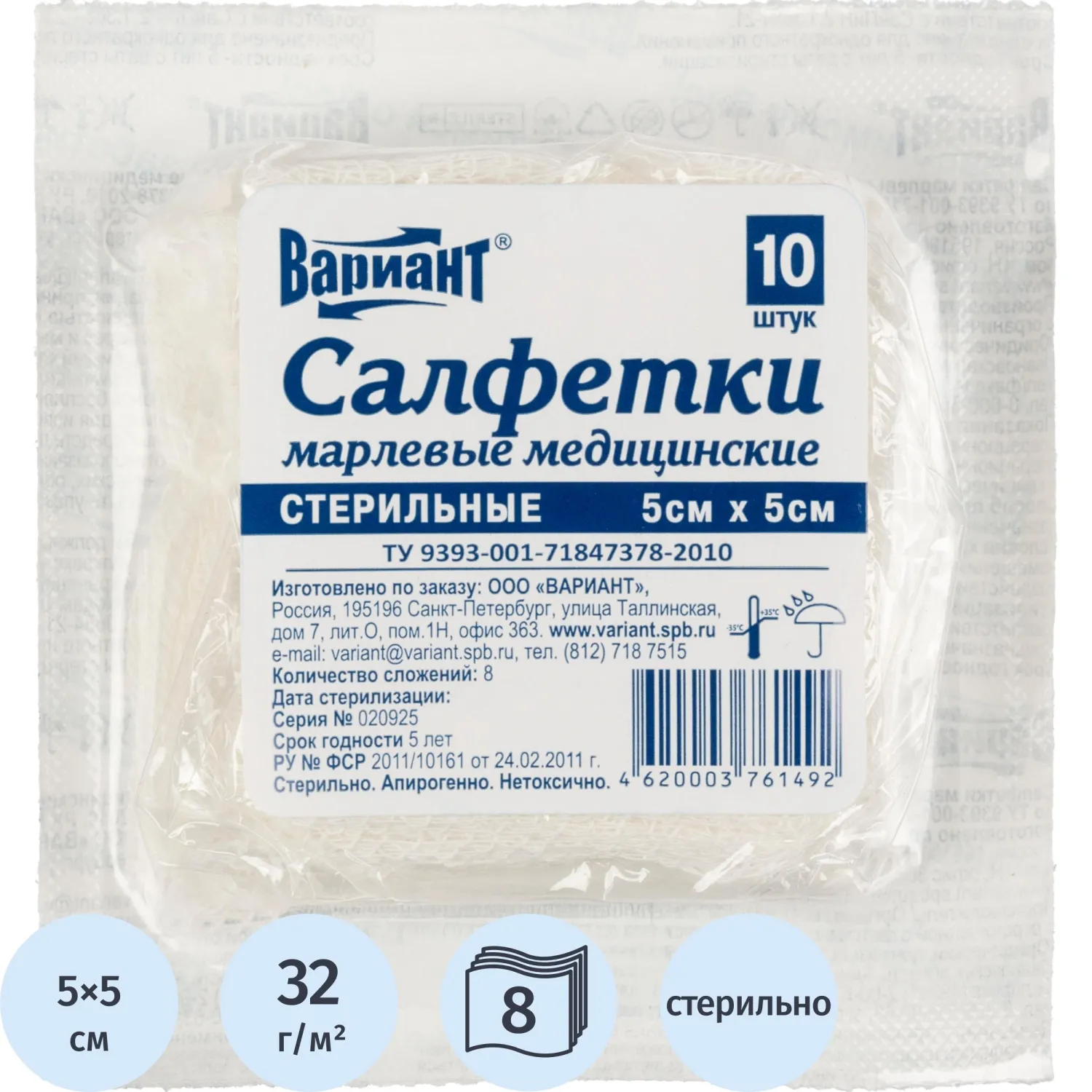 Салфетки стер 5х5см 8сл 17нитей 10шт/уп Вариант ШК61492