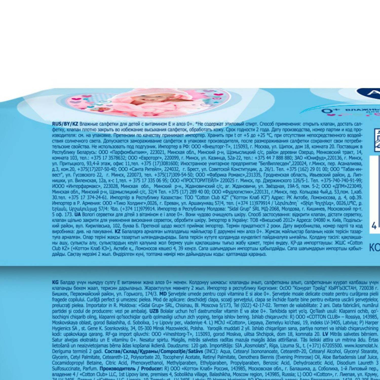 Влажные салфетки детские Солнце и луна 180 штук в упаковке