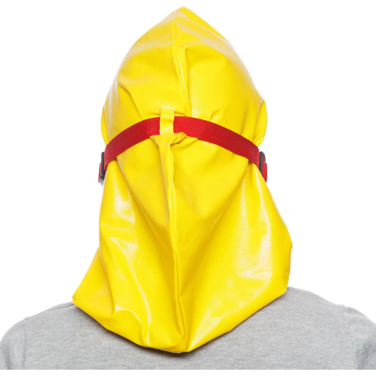 — огнестойкий капюшон со смотровым окном, внешним регулируемым оголовьем, эластичным шейным обтюратором, полумаской и клапаном выдоха;