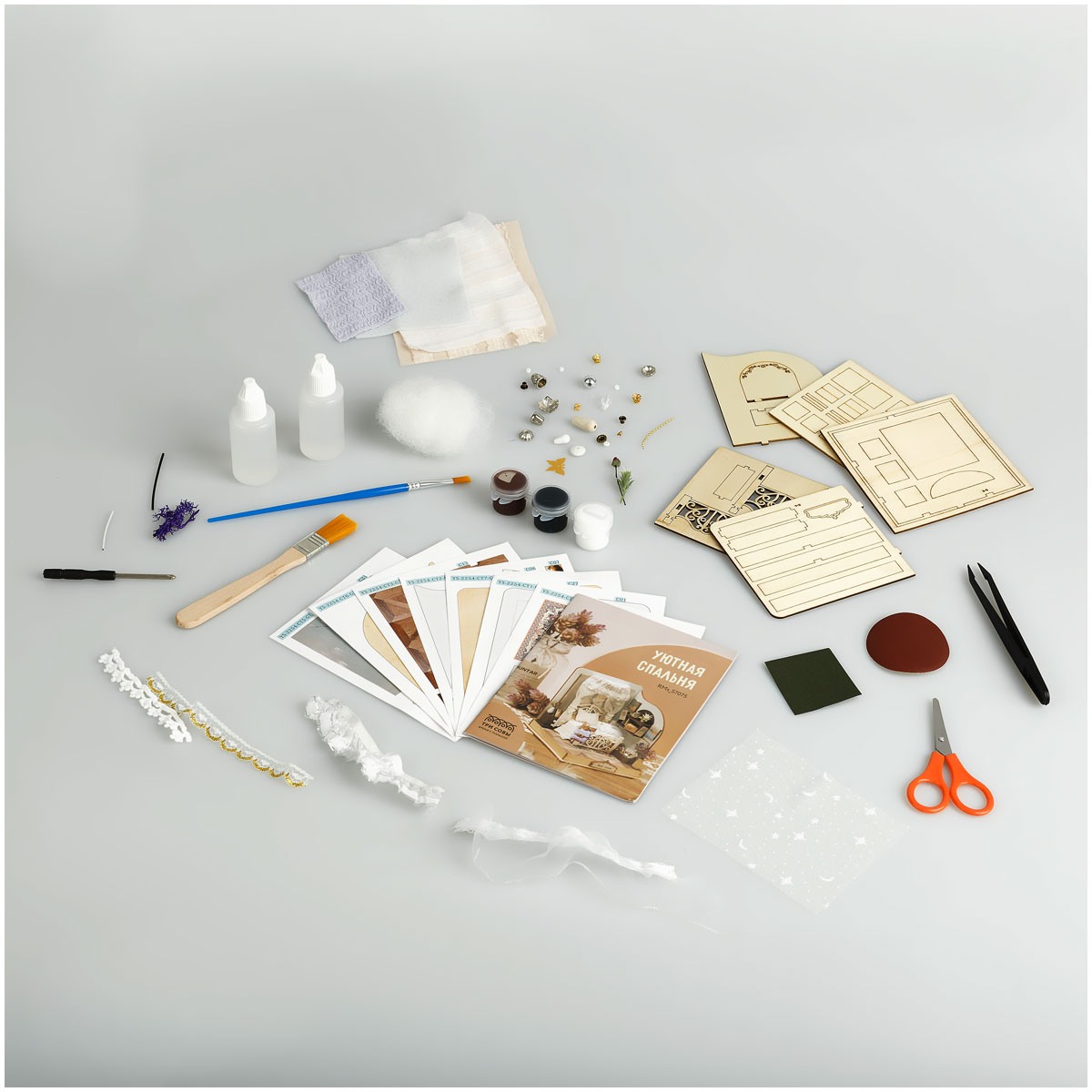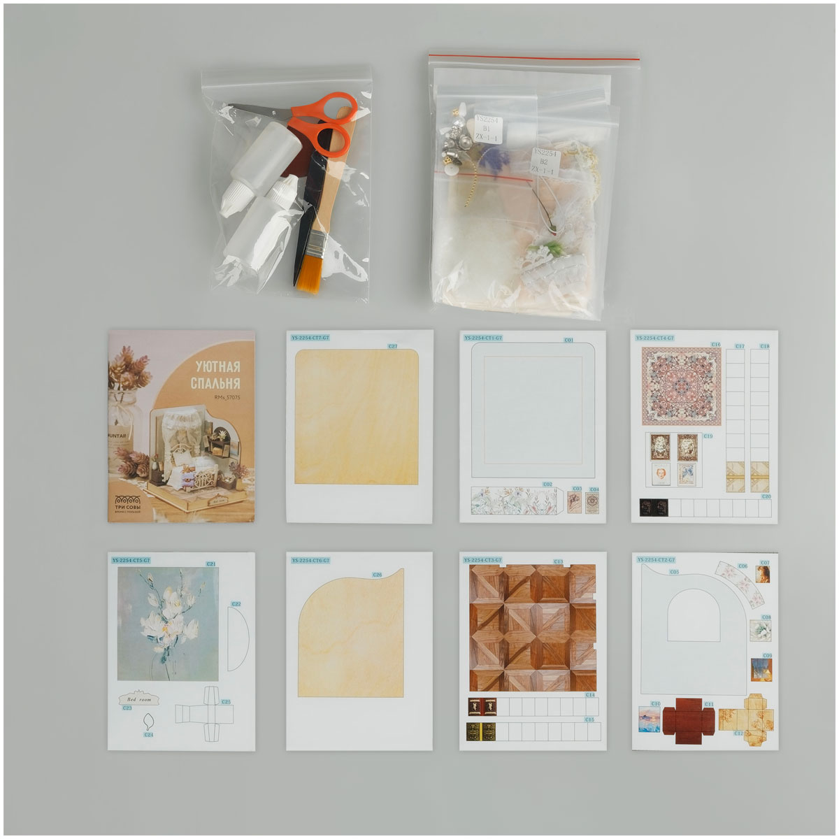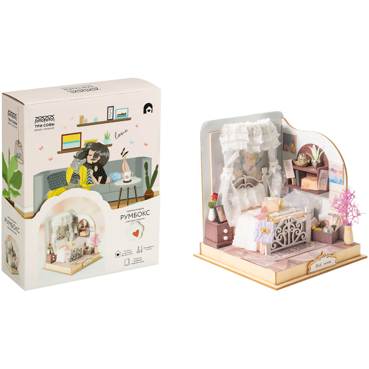 Сборная модель ТРИ СОВЫ, Румбокс "Уютная спальня", инструменты, клей, картонная коробка