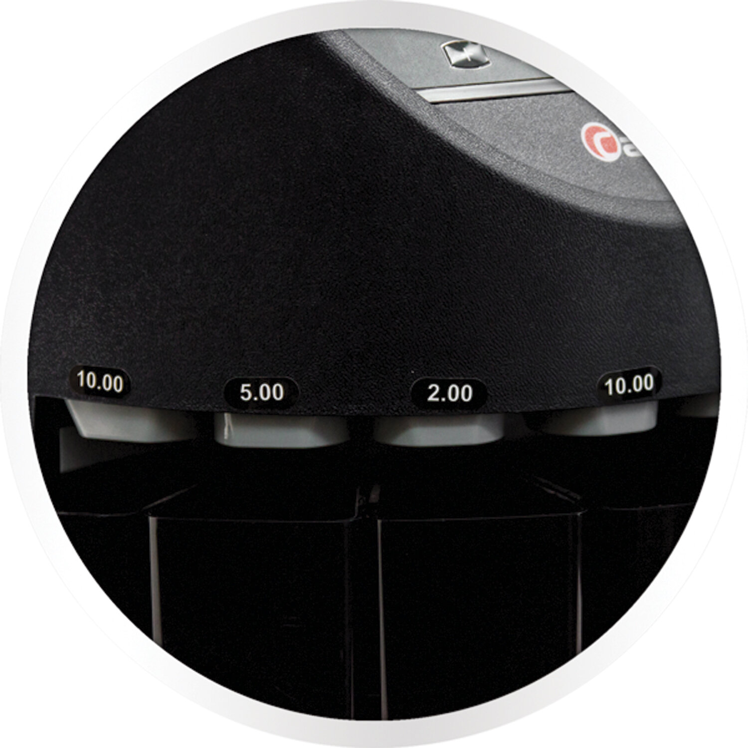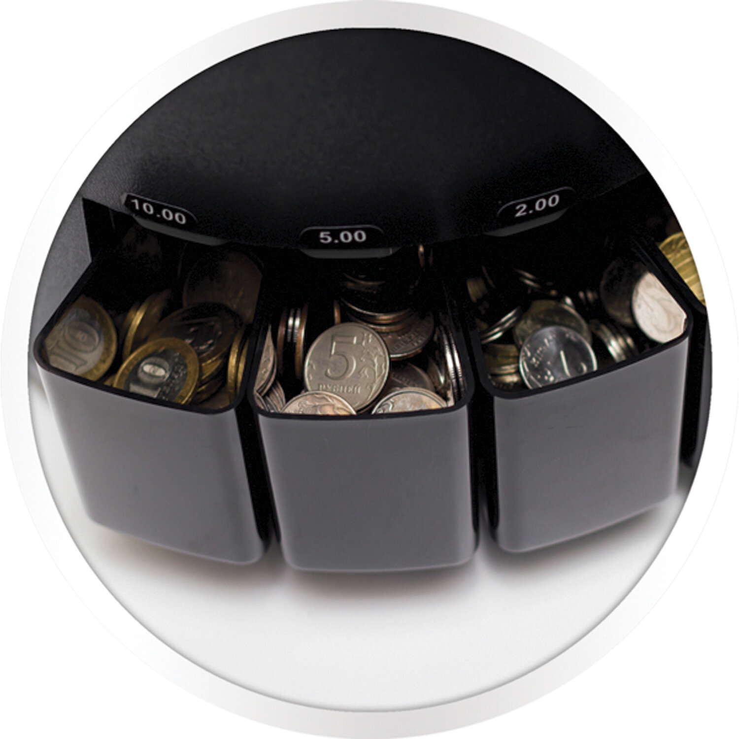 Поддерживает российские рублевые монеты всех существующих номиналов. Может функционировать в режиме автоматического счета, ручного отсчета заданного количества монет и режима смешанного счета. Работает автономно до 4 часов непрерывной работы от аккумулятора емкостью 1500 mAh.